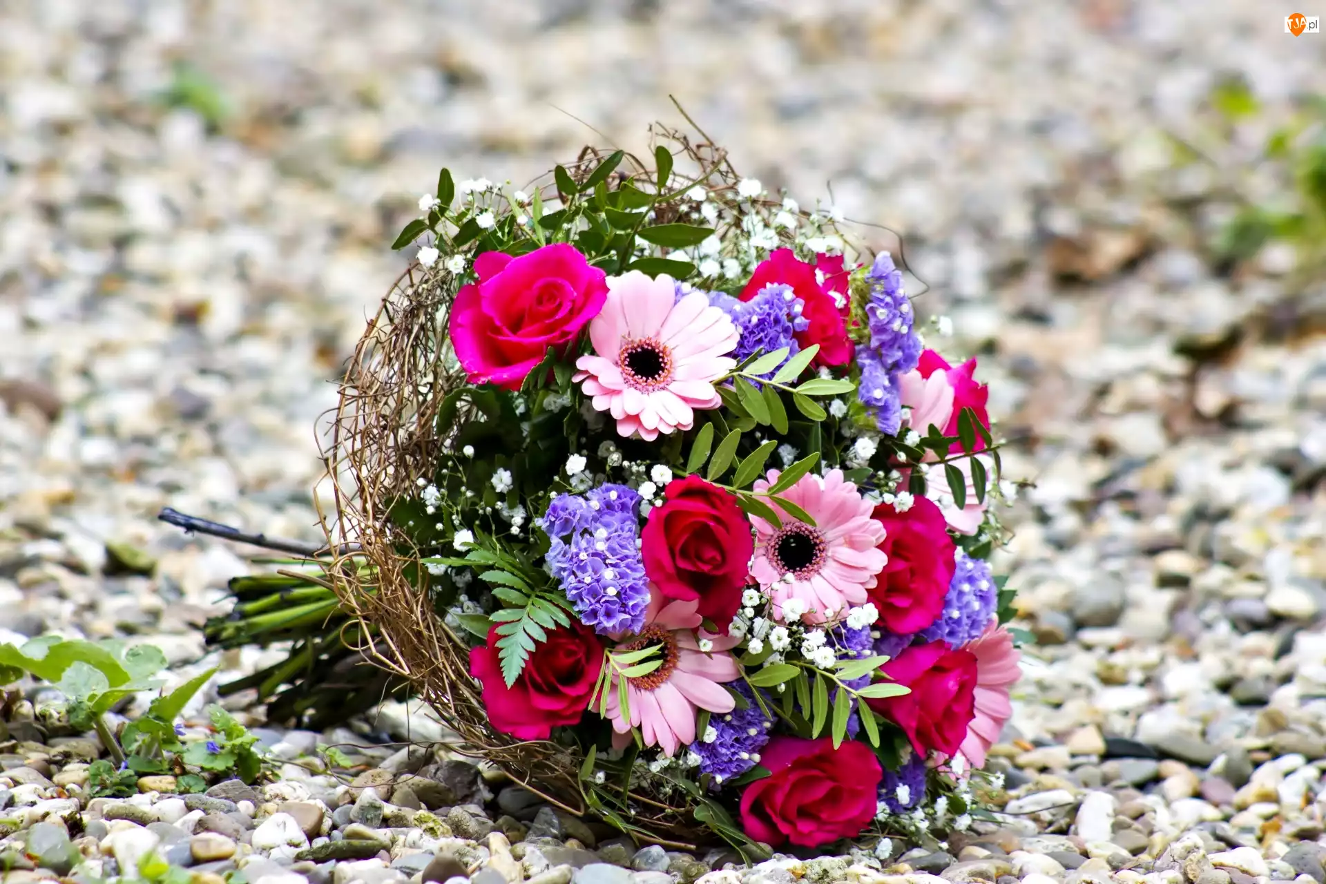Bukiet, Kwiaty, Róże, Kamienie