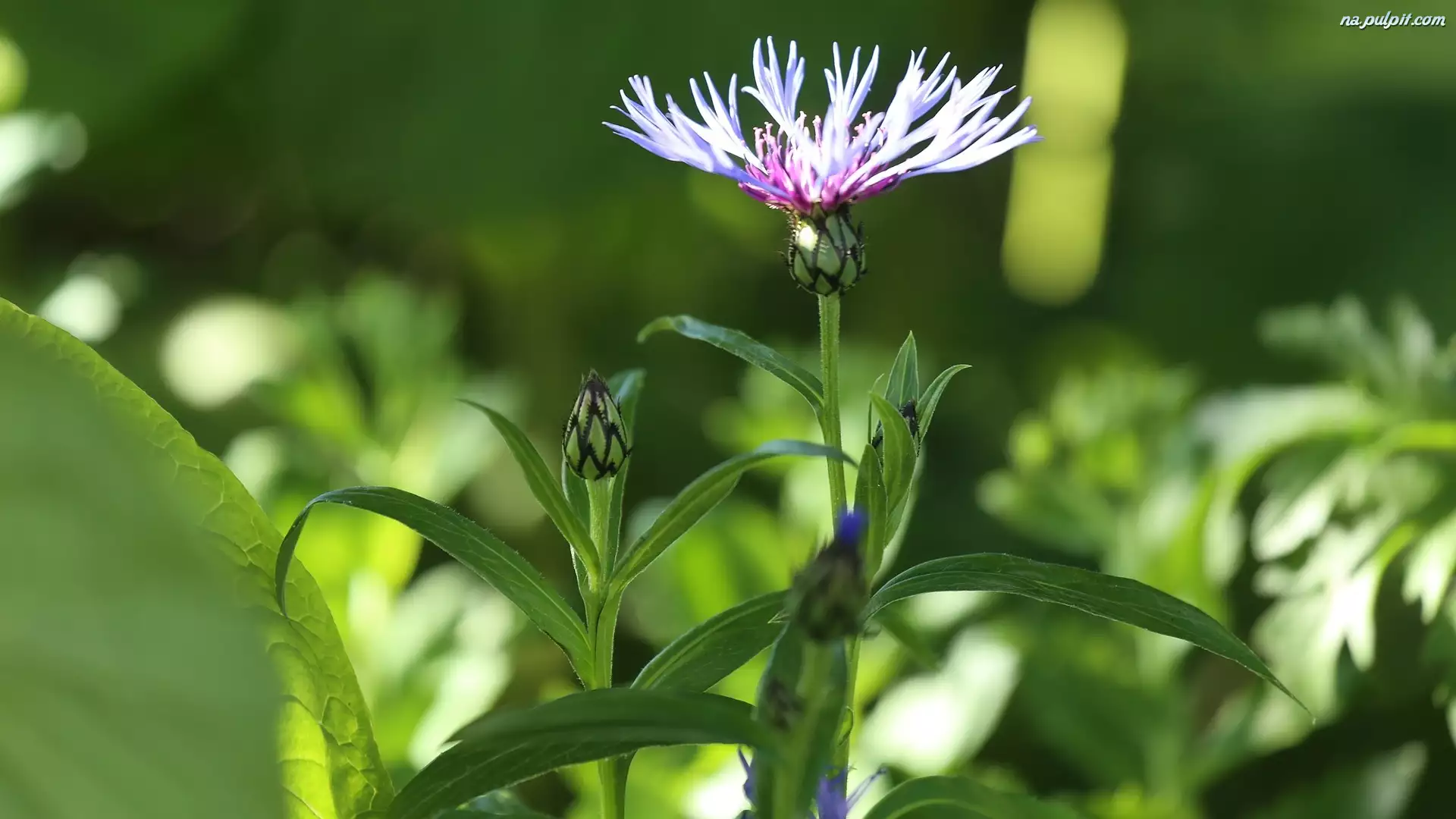 Kwiaty chabry z pąkami i listkami