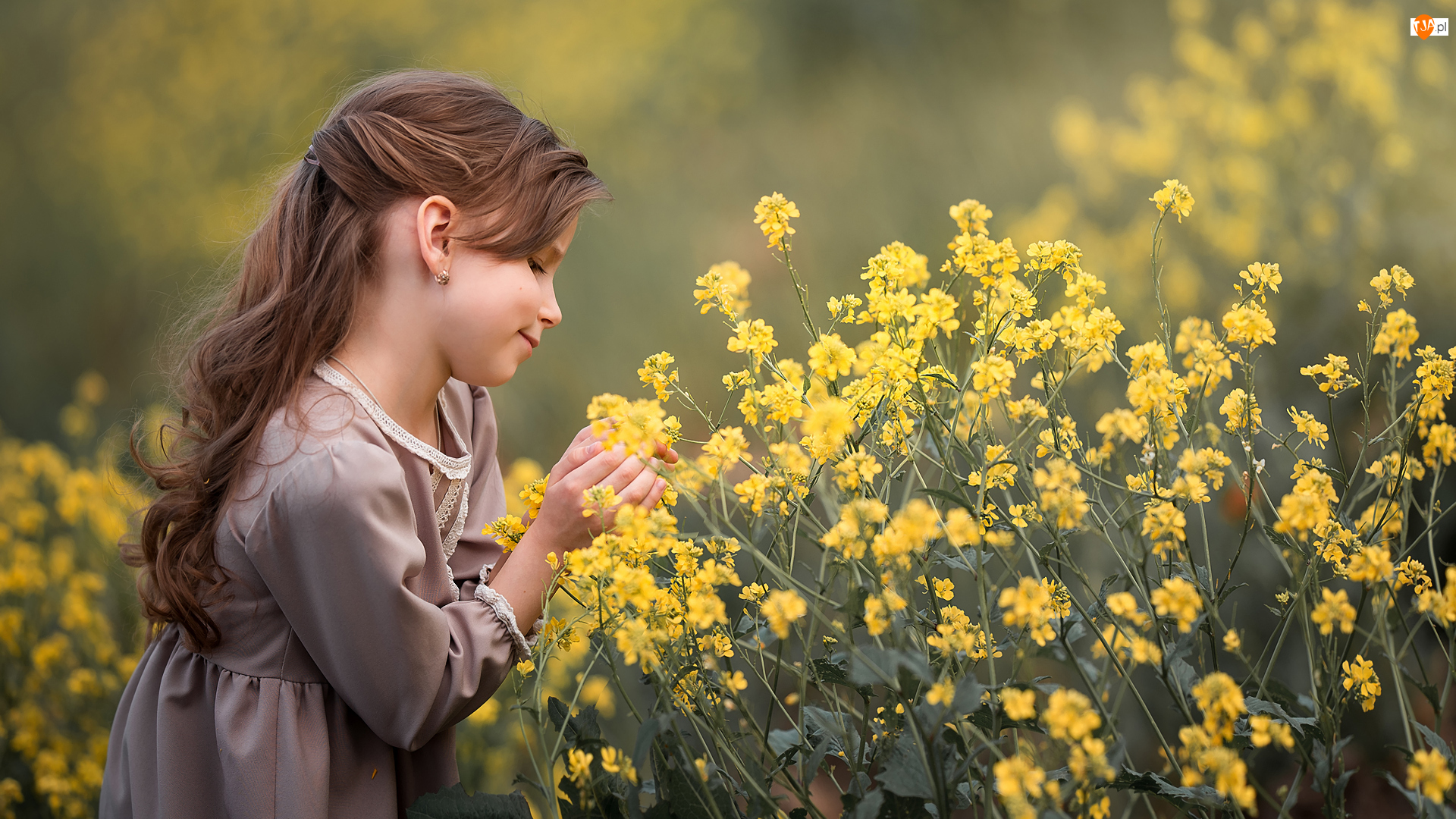 Kwiaty, Dzieci, Dziewczynka, Rzepak