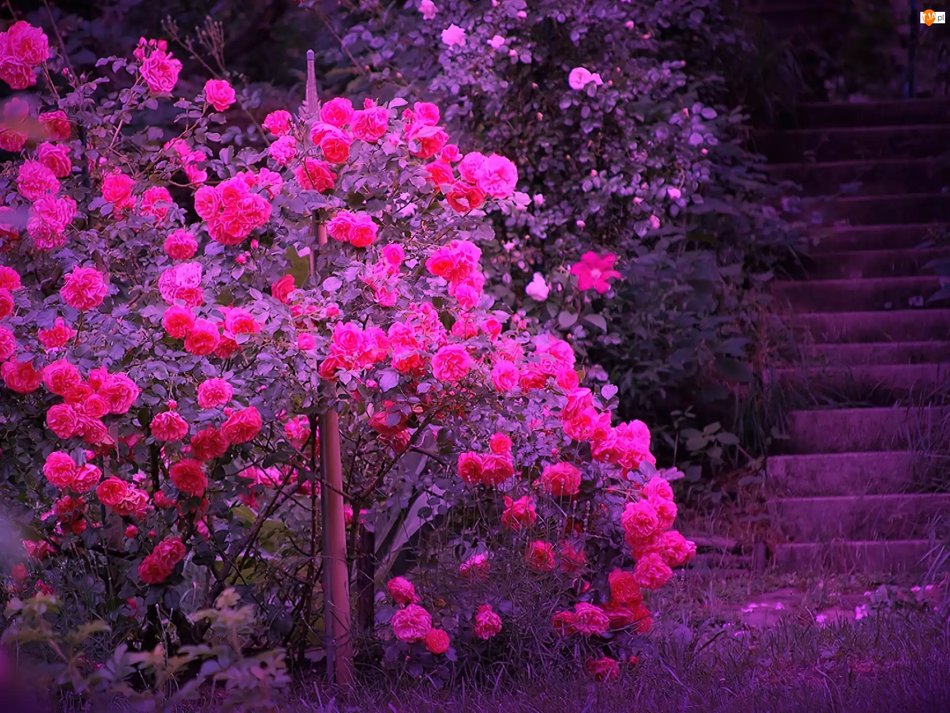 Kwiaty, Fioletowe, Schody