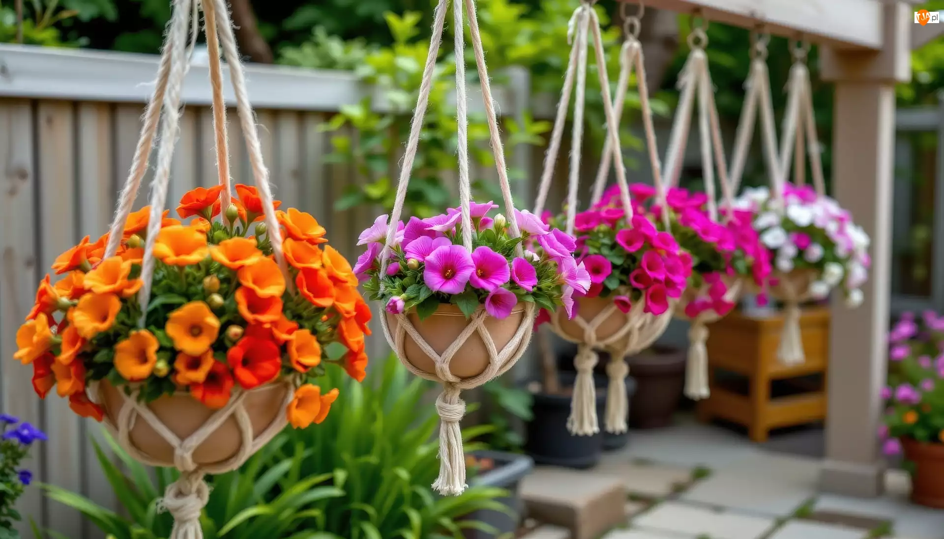 Kwiaty, Grafika, Kolorowe, Wiszące, Patio