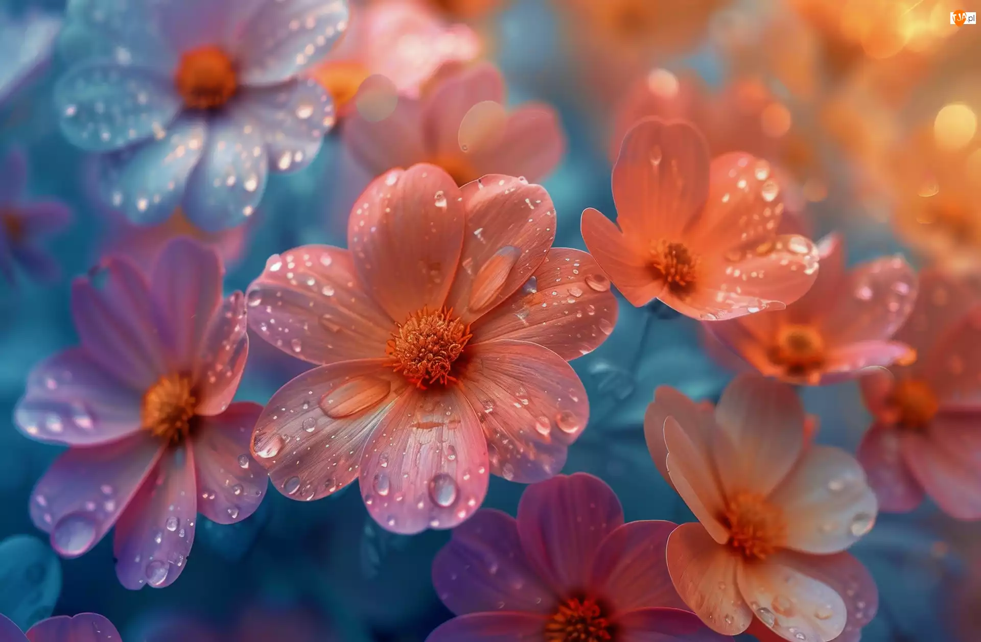 Kwiaty, Grafika, Mokre, Kolorowe, Krople