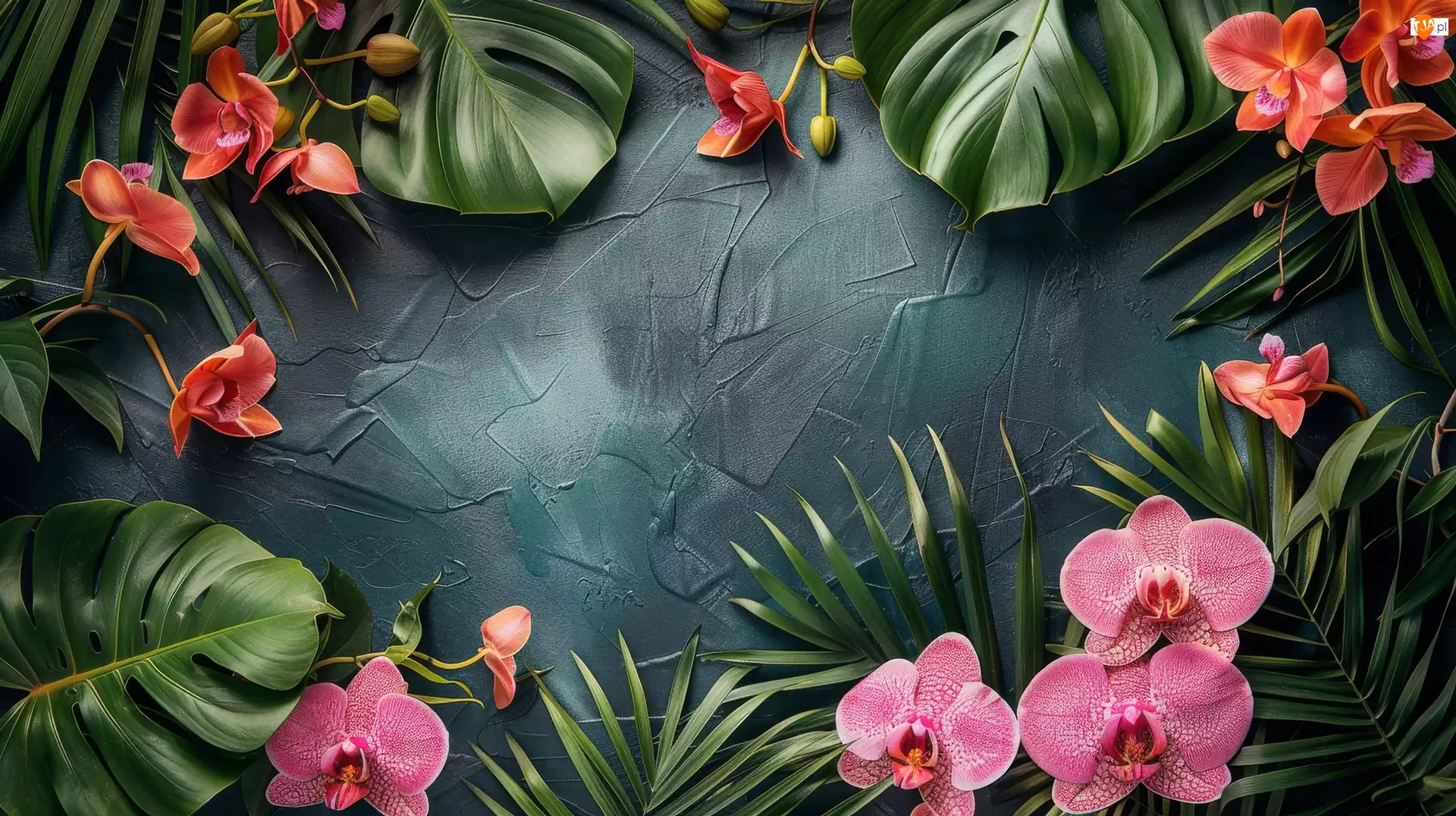 Kwiaty, Grafika, Orchidea, Storczyk, Liście