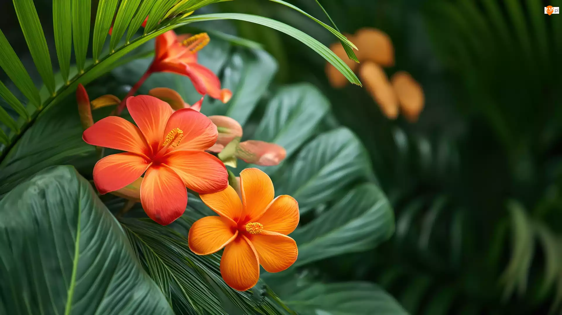 Kwiaty, Grafika, Rozwinięte, Pomarańczowe, Liście