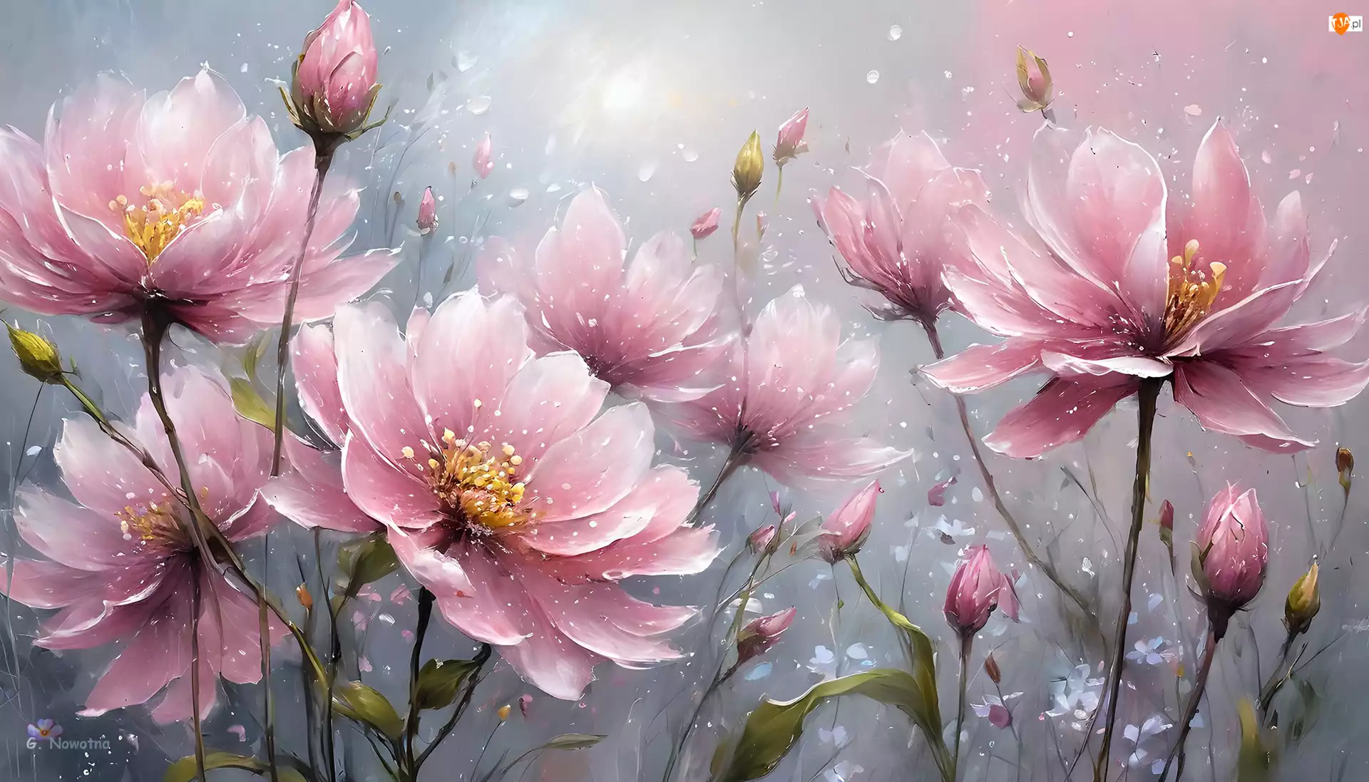 Kwiaty, Grafika, Rozwinięte, Różowe, Pąki
