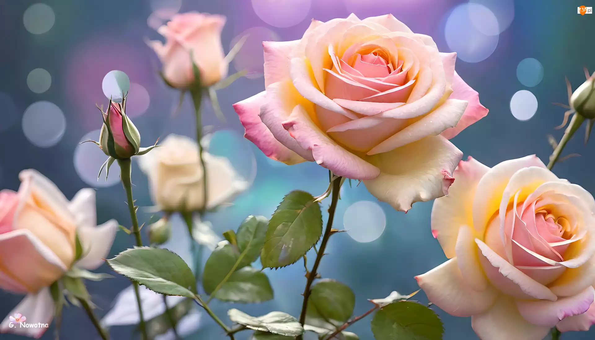 Kwiaty, Jasnoróżowe, Róże, Grafika