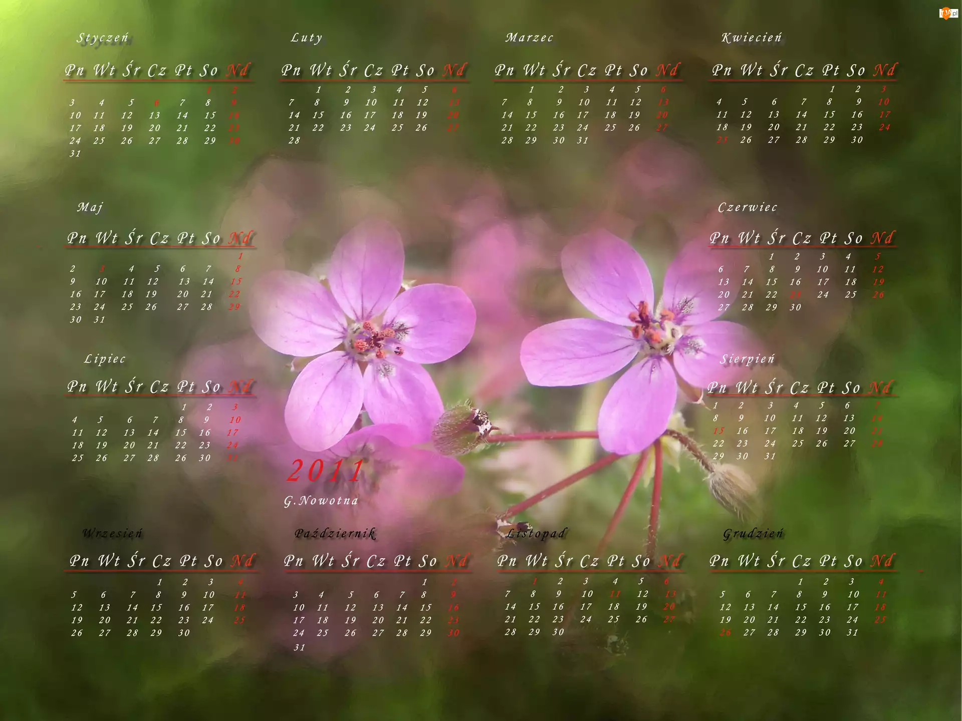 Kwiaty, Kalendarz 2011