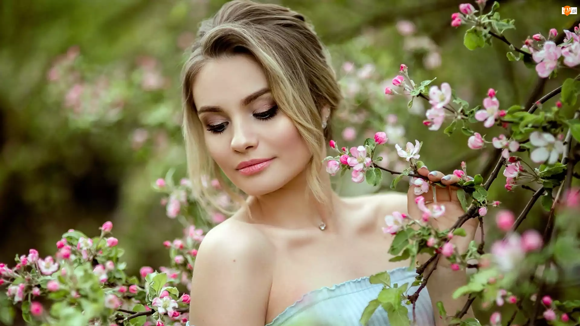Kwiaty, Kobieta, Drzewo owocowe, Gałąź