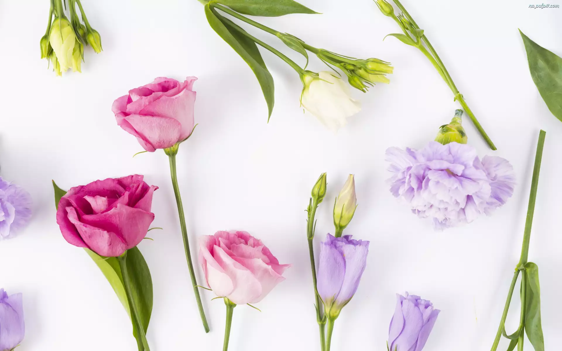 Kwiaty, Kolorowe, Goździk, Deski, Eustoma, Pąki