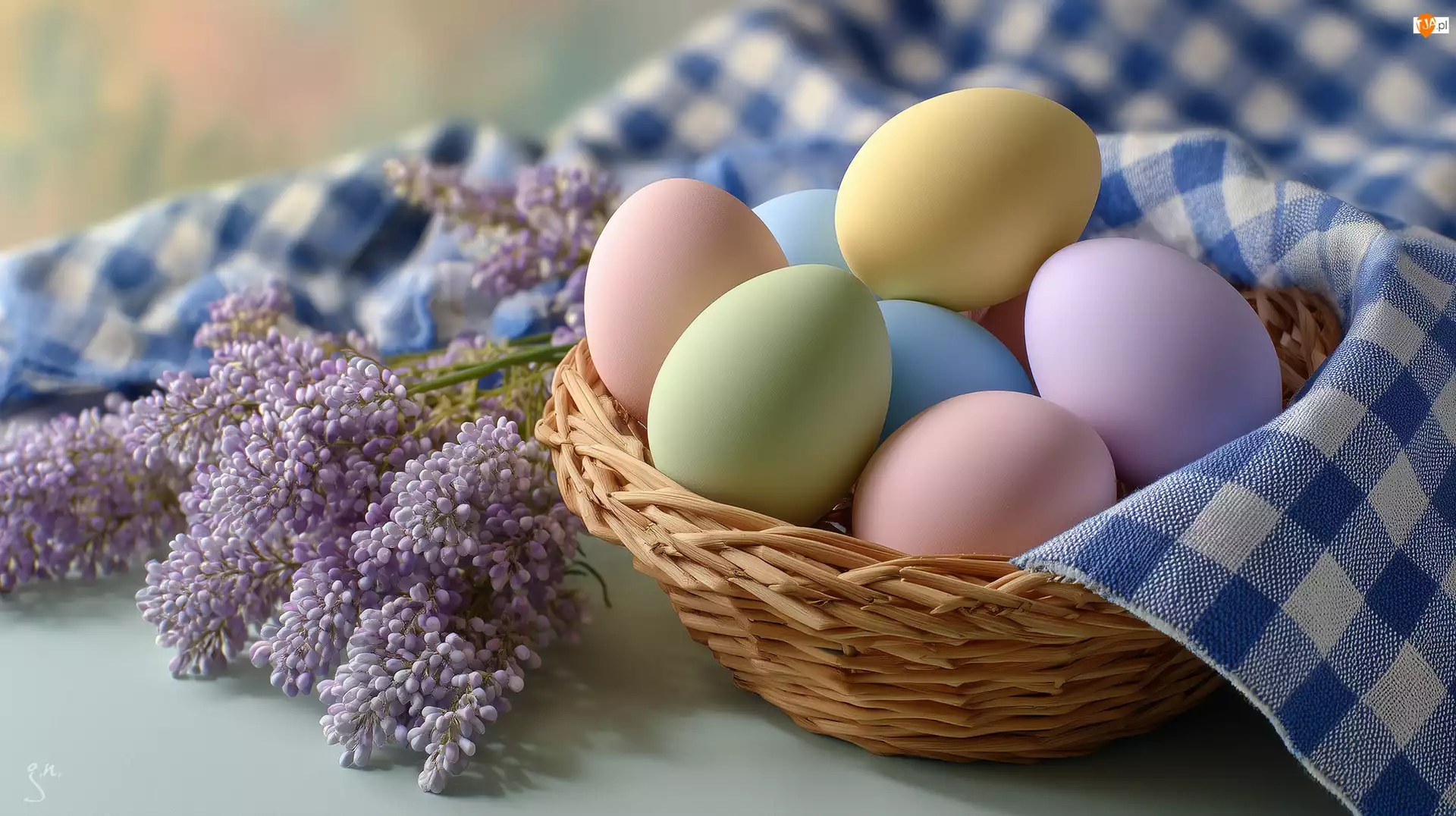 Kwiaty, Kolorowe, Serweta, Grafika Ai, Jajka, Fioletowe, Wielkanoc, Koszyk