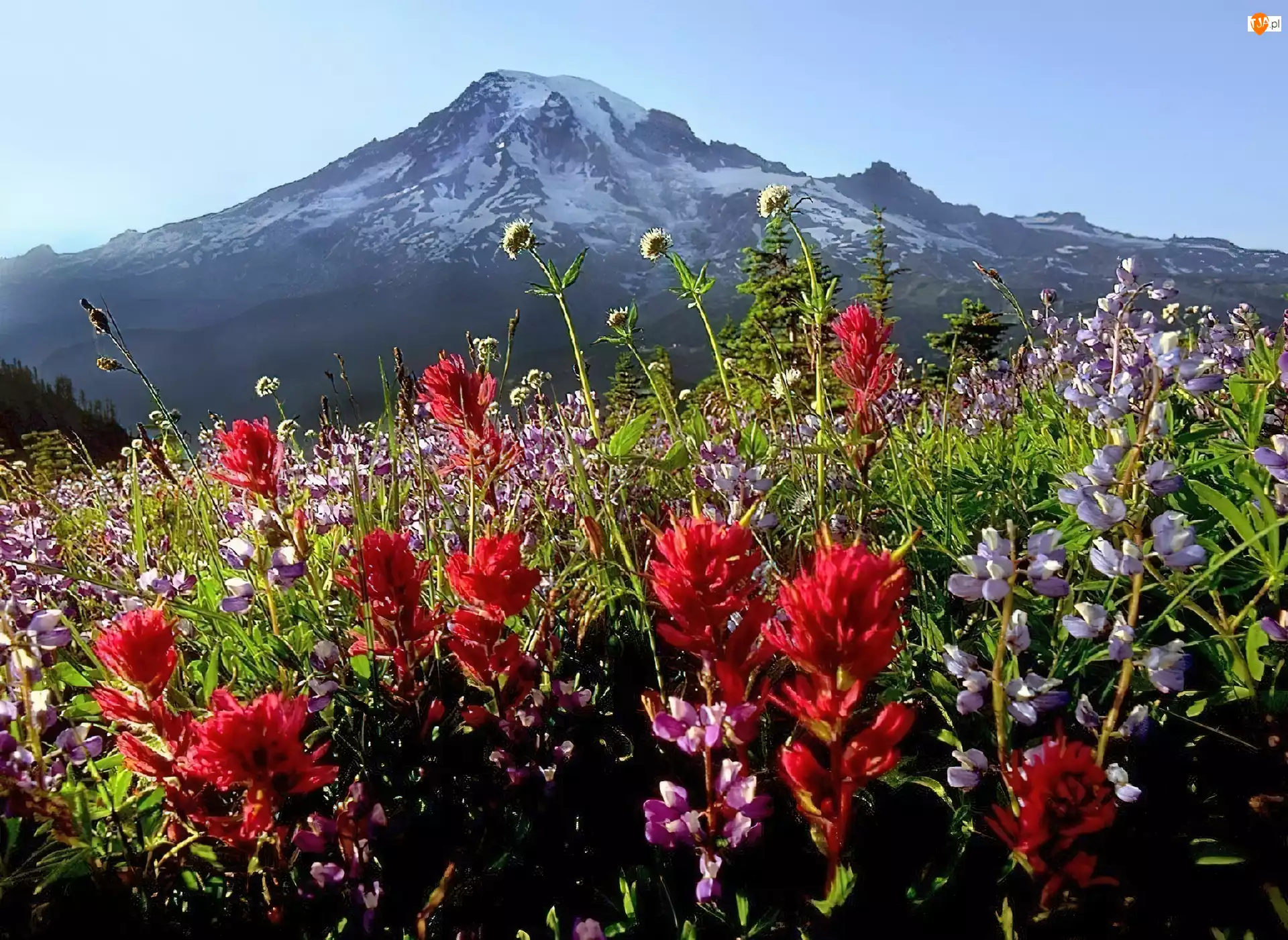 Kwiaty, Krajobraz, Wiosna, Góry, Łąka