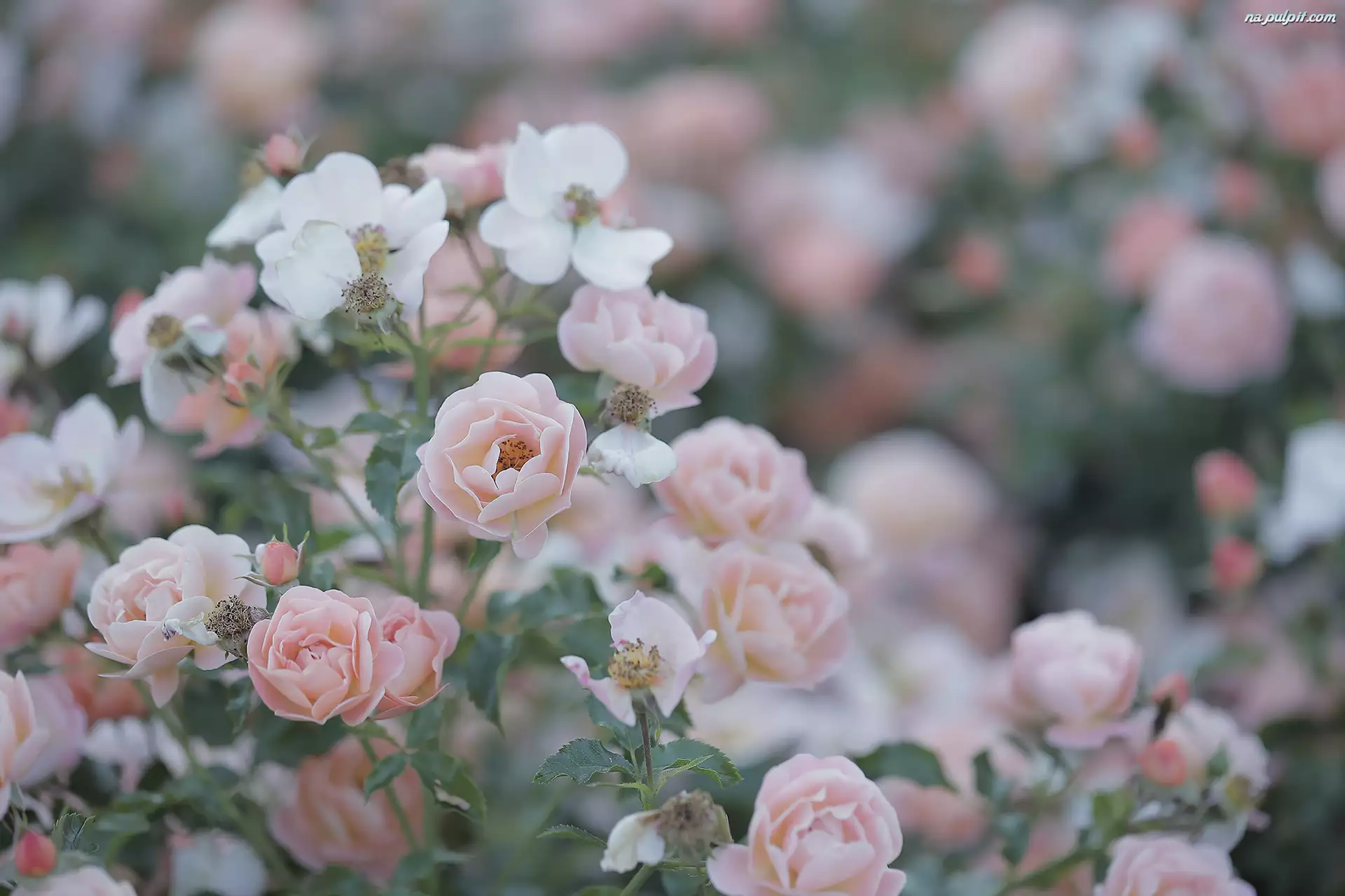 Kwiaty, Krzew, Róże, Różowe, Różany