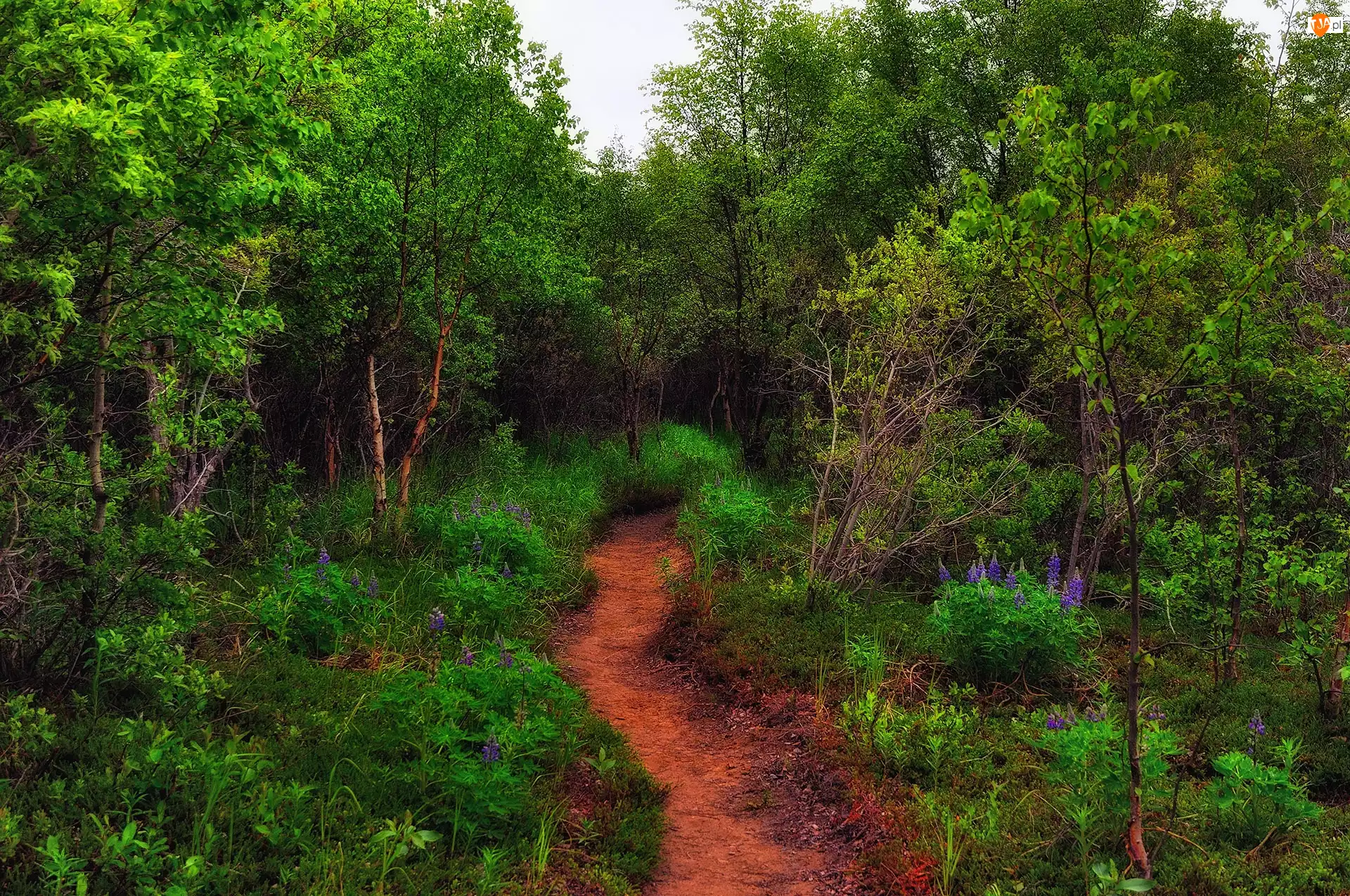 Kwiaty, Las, Ścieżka, Dróżka, Leśne