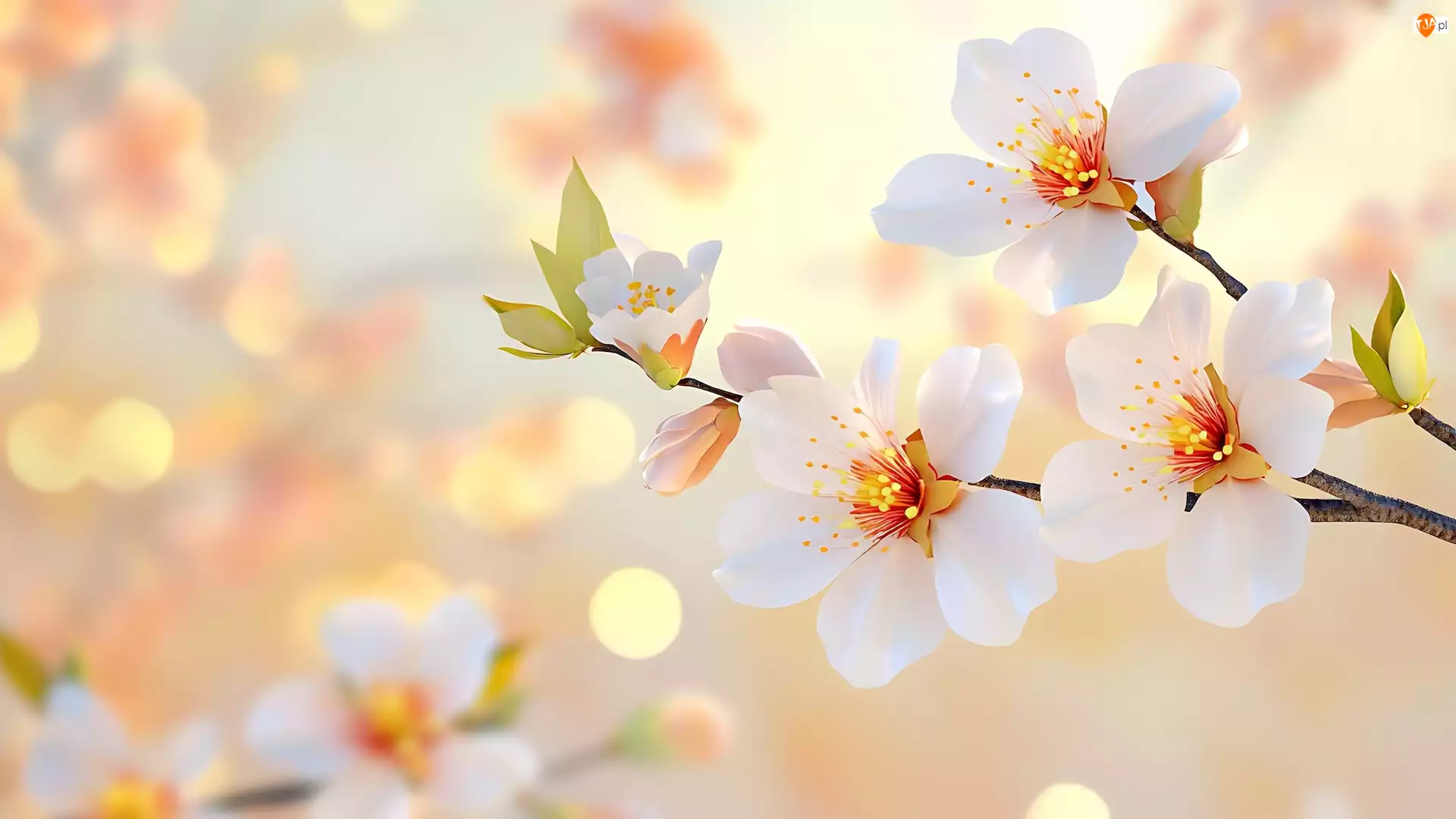Kwiaty, Listki, Gałązki, Drzewo owocowe, Białe