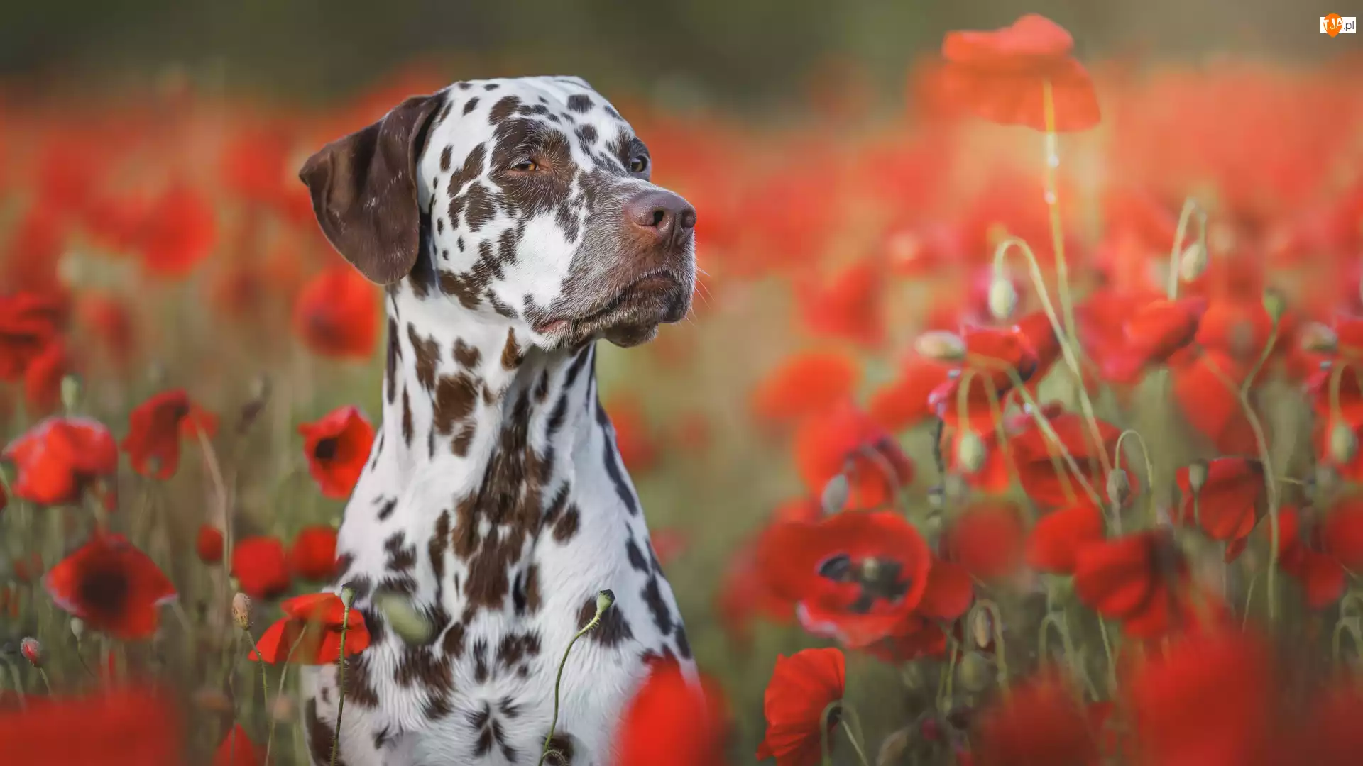 Kwiaty, Maki, Dalmatyńczyk, Pies, Czerwone