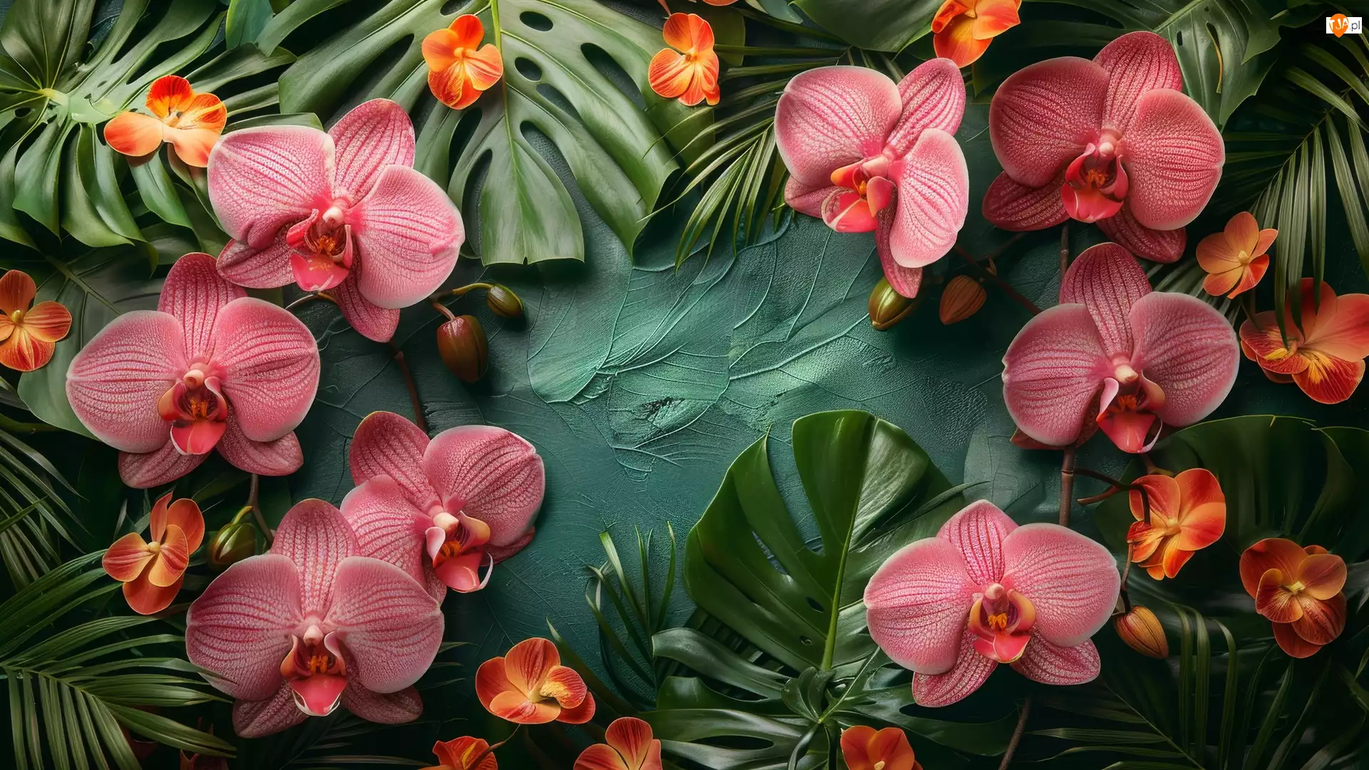 Kwiaty, Monstera, Orchidee, Storczyki, Liście