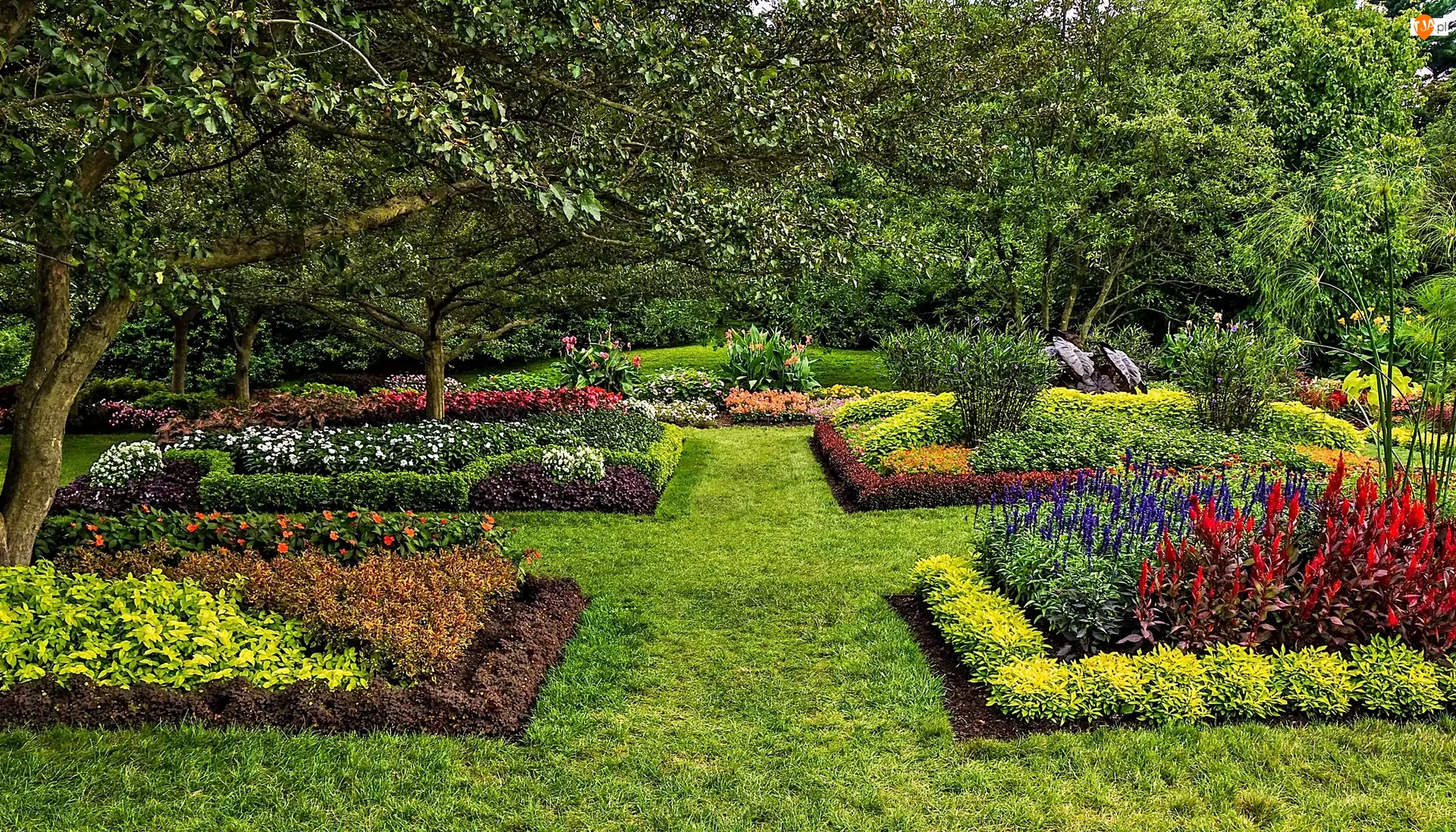 Kwiaty, Ogród, Drzewa