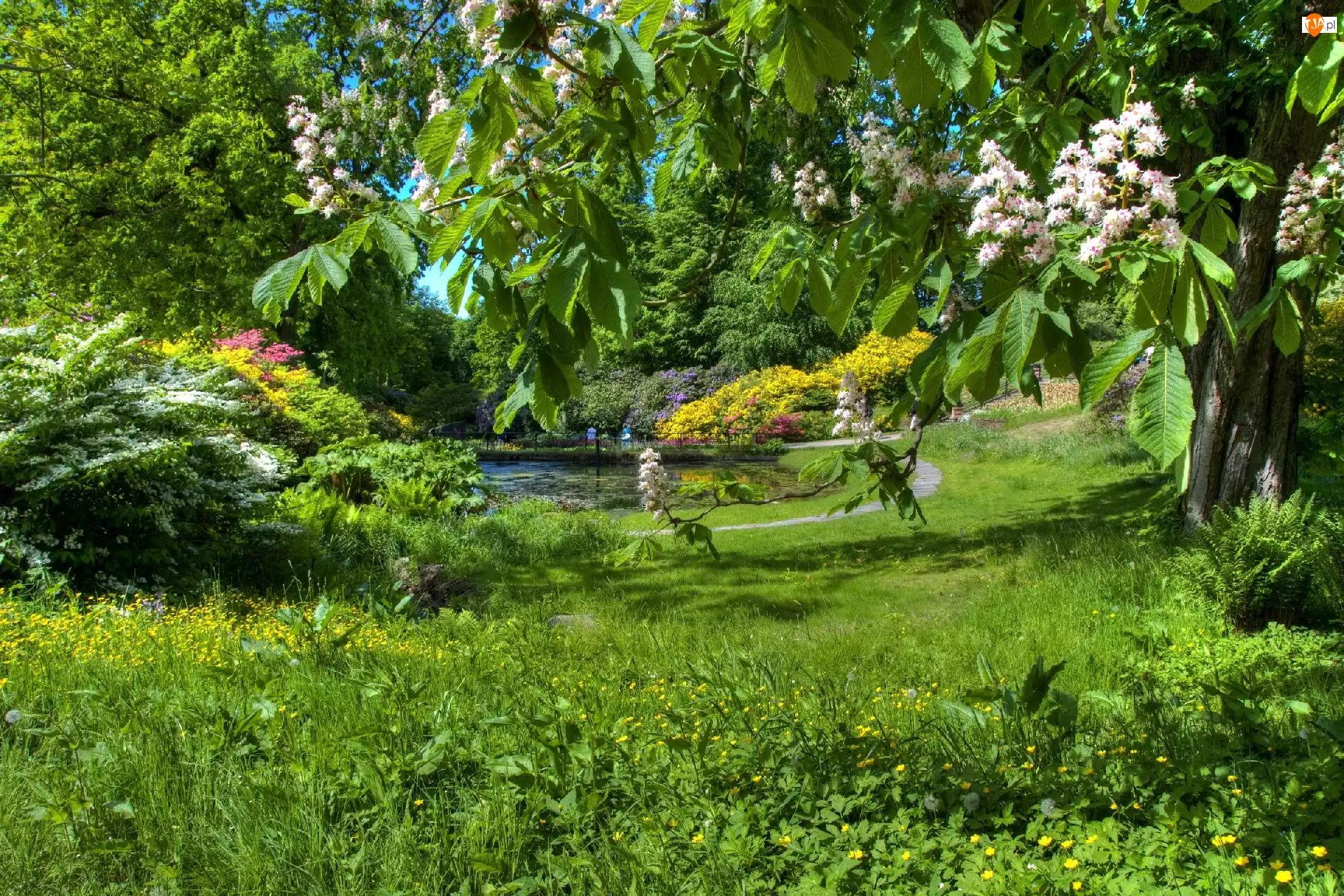 Kwiaty, Ogród, Drzewa