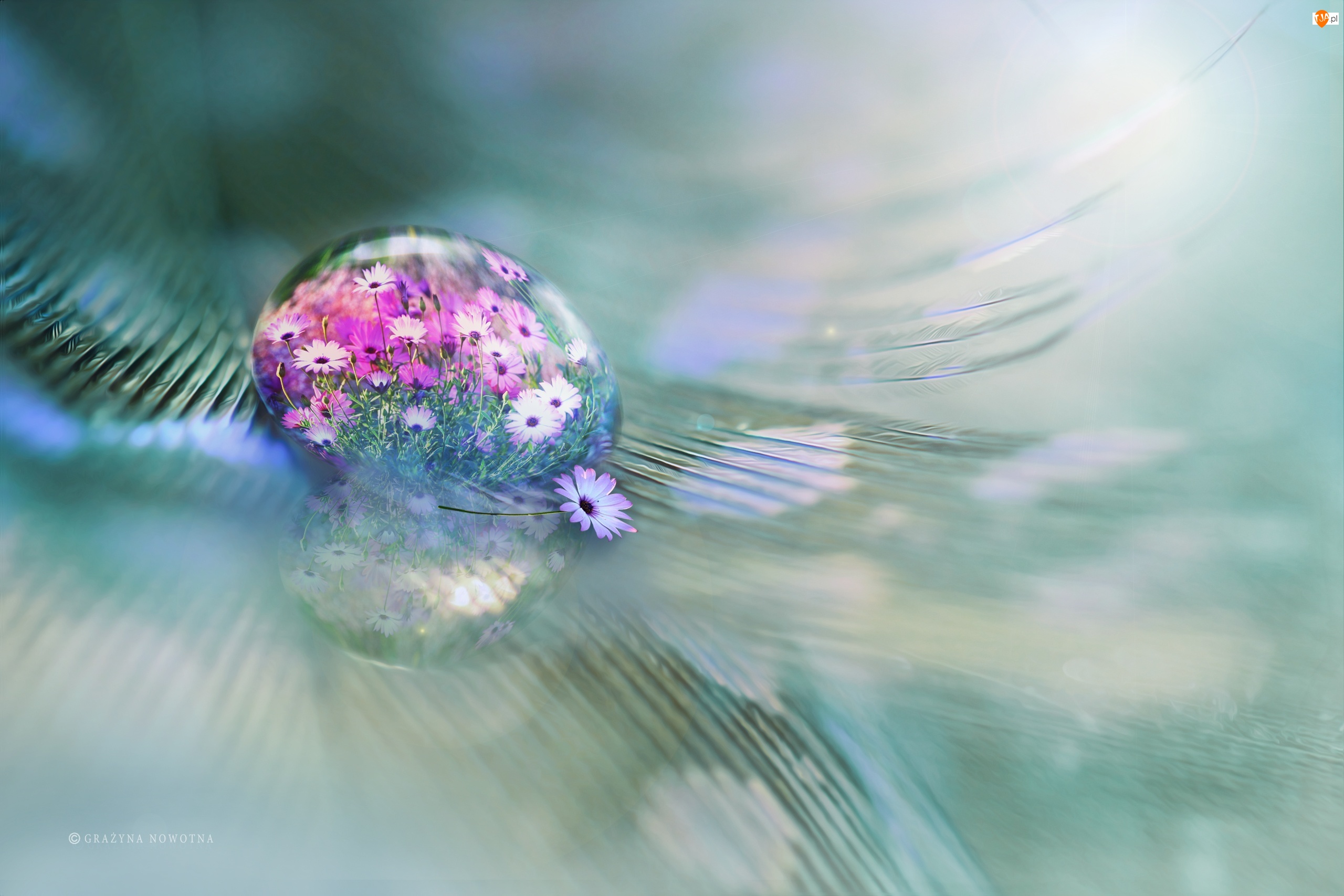 Kwiaty, Piórko, Kropla, Makro