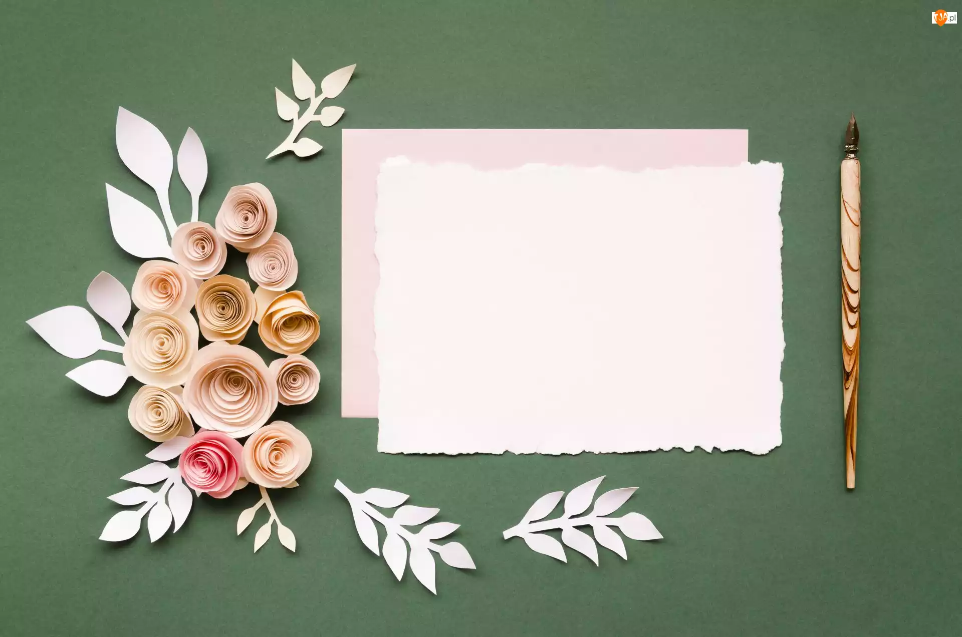 Kwiaty, Pióro, Papierowe, Wycinanki, Kartki