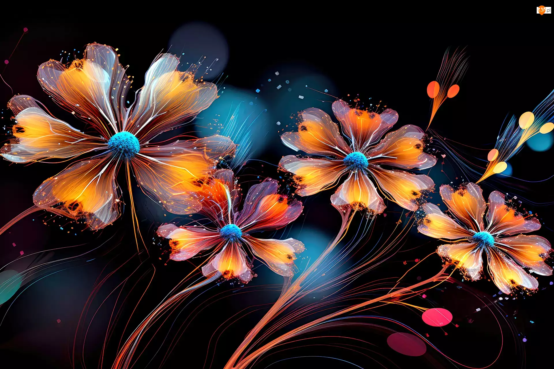Kwiaty, Przeźroczyste, Czarne, Grafika, Pomarańczowe, Tło