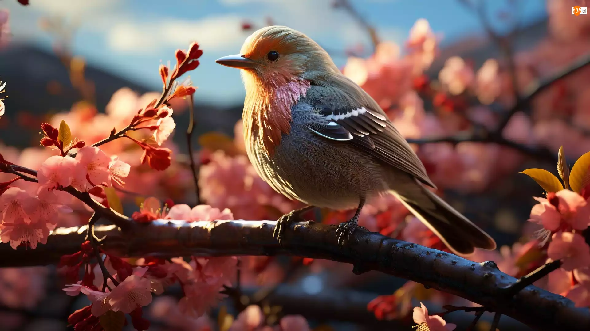 Kwiaty, Ptak, Drzewo owocowe, Różowe