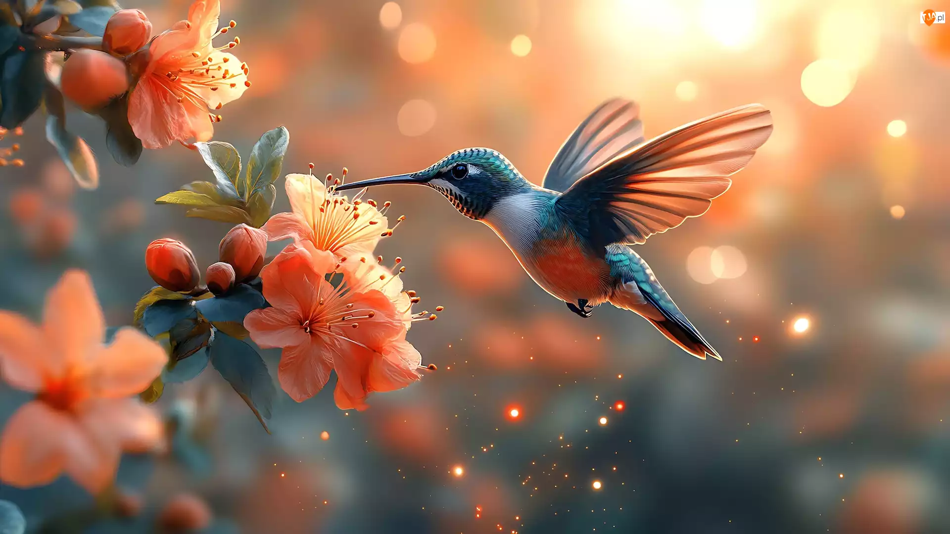 Kwiaty, Ptak, Koliber, Pomarańczowe