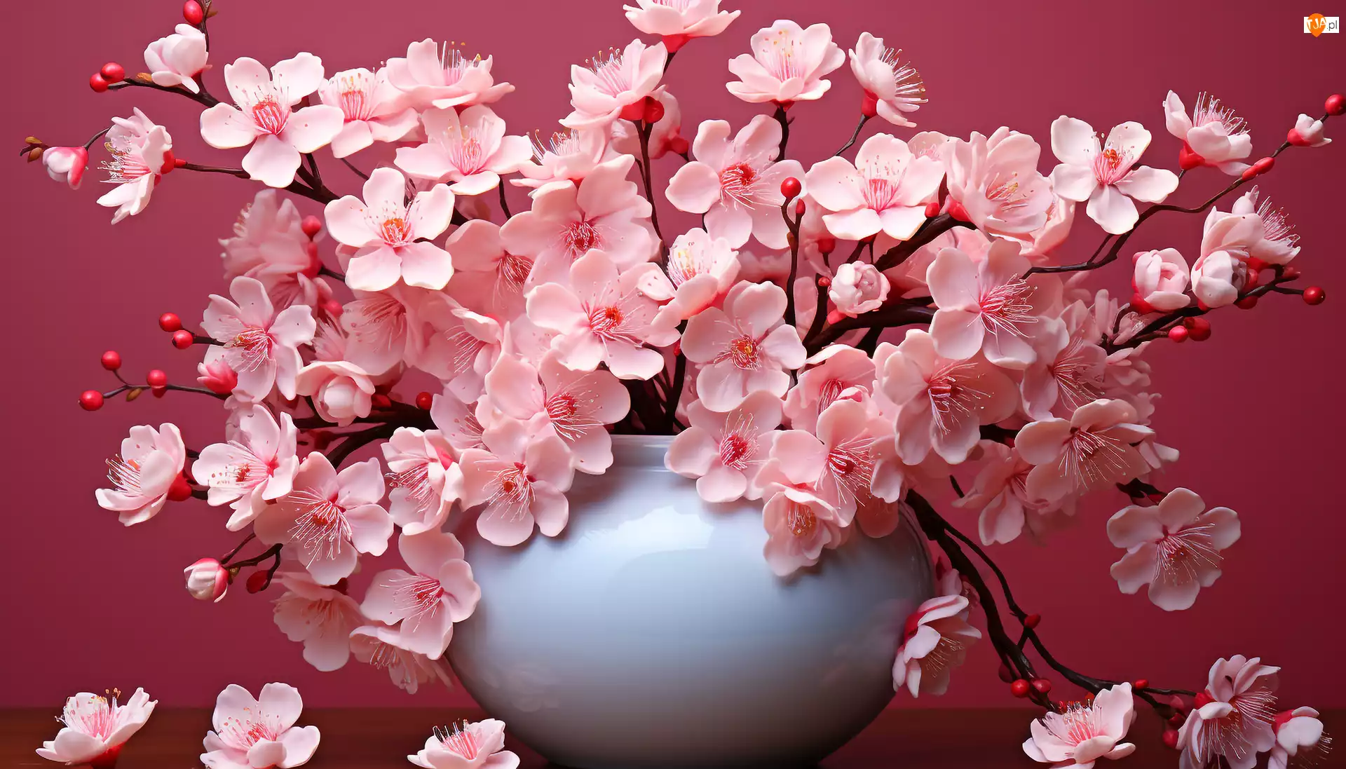 Kwiaty, Różowe, Biały, Grafika, Bukiet, Wazon