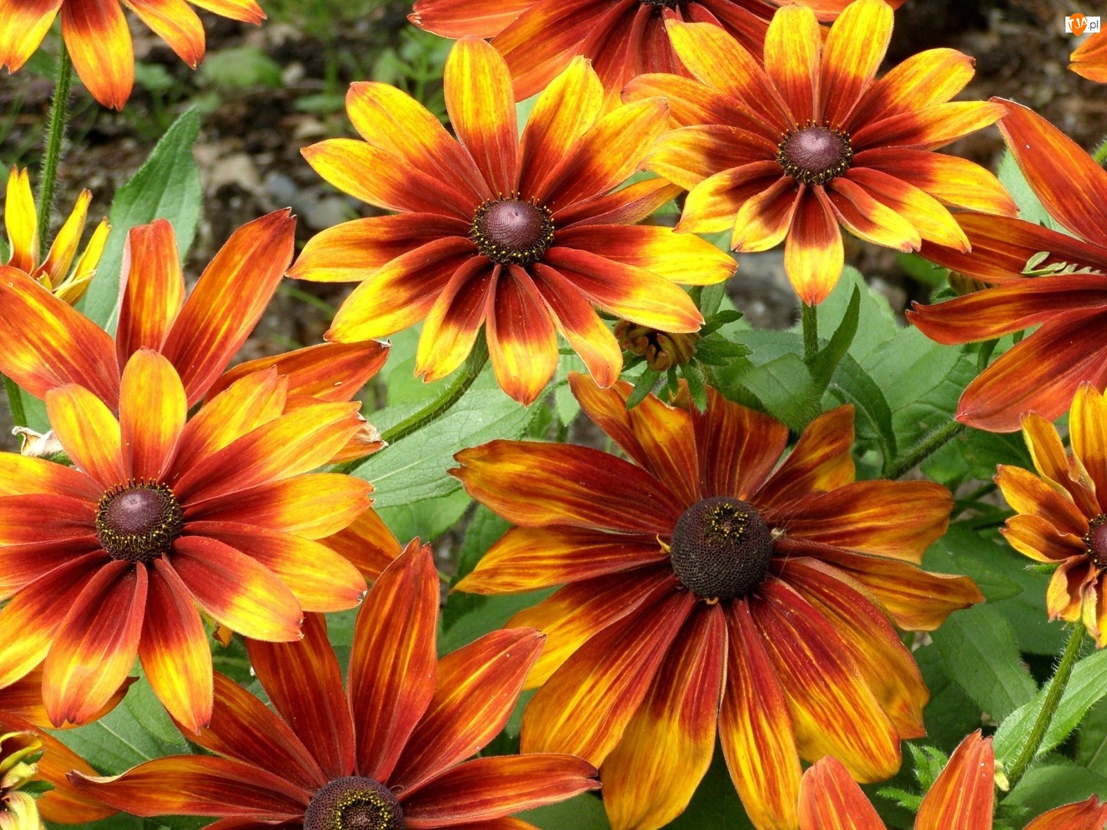 Kwiaty, Rudbekia, Pomarańczowo, Żółta