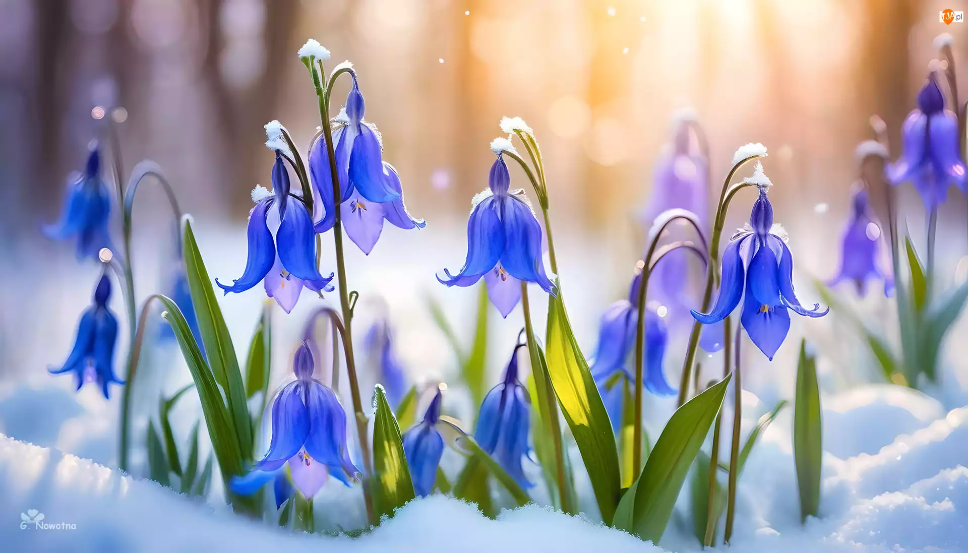 Kwiaty, Śnieg, Dzwonki, Niebieskie, Grafika