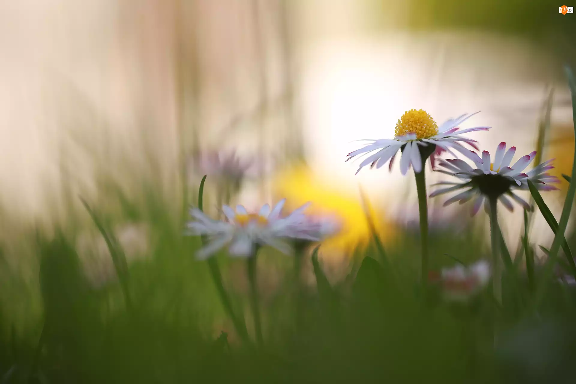 Kwiaty, Stokrotki, Zbliżenie, Białe