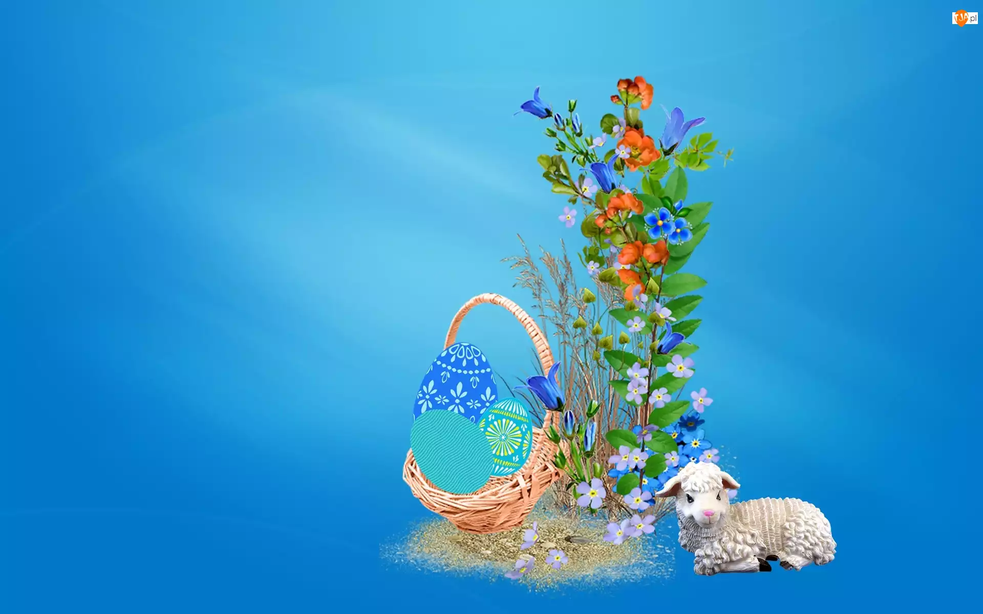 Kwiaty, Wielkanoc, Pisanki, Kosz, Baranek