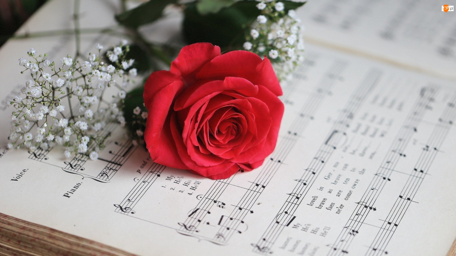 Gipsówka, Nuty, Róża, Kwiat, Zeszyt
