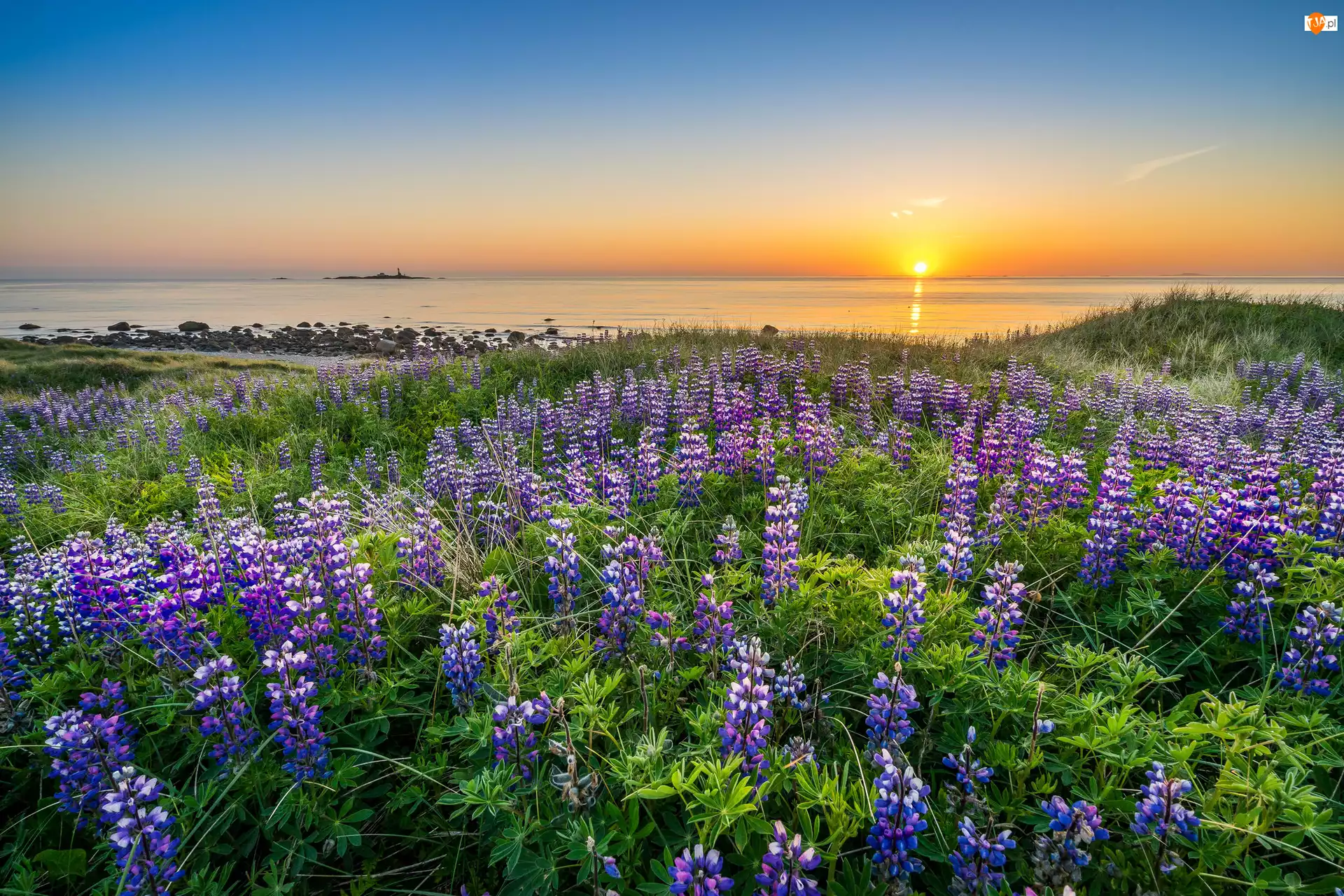 Łubin, Norwegia, Morze, Rogaland, Zachód słońca