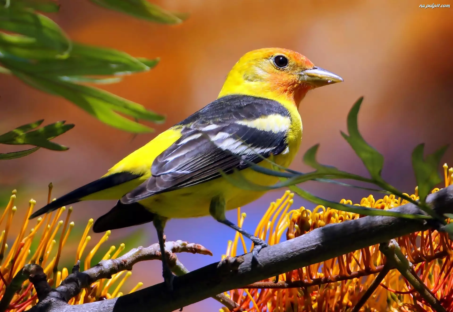 Kwiaty, Żółty, Gałąz, Ptak, Światło