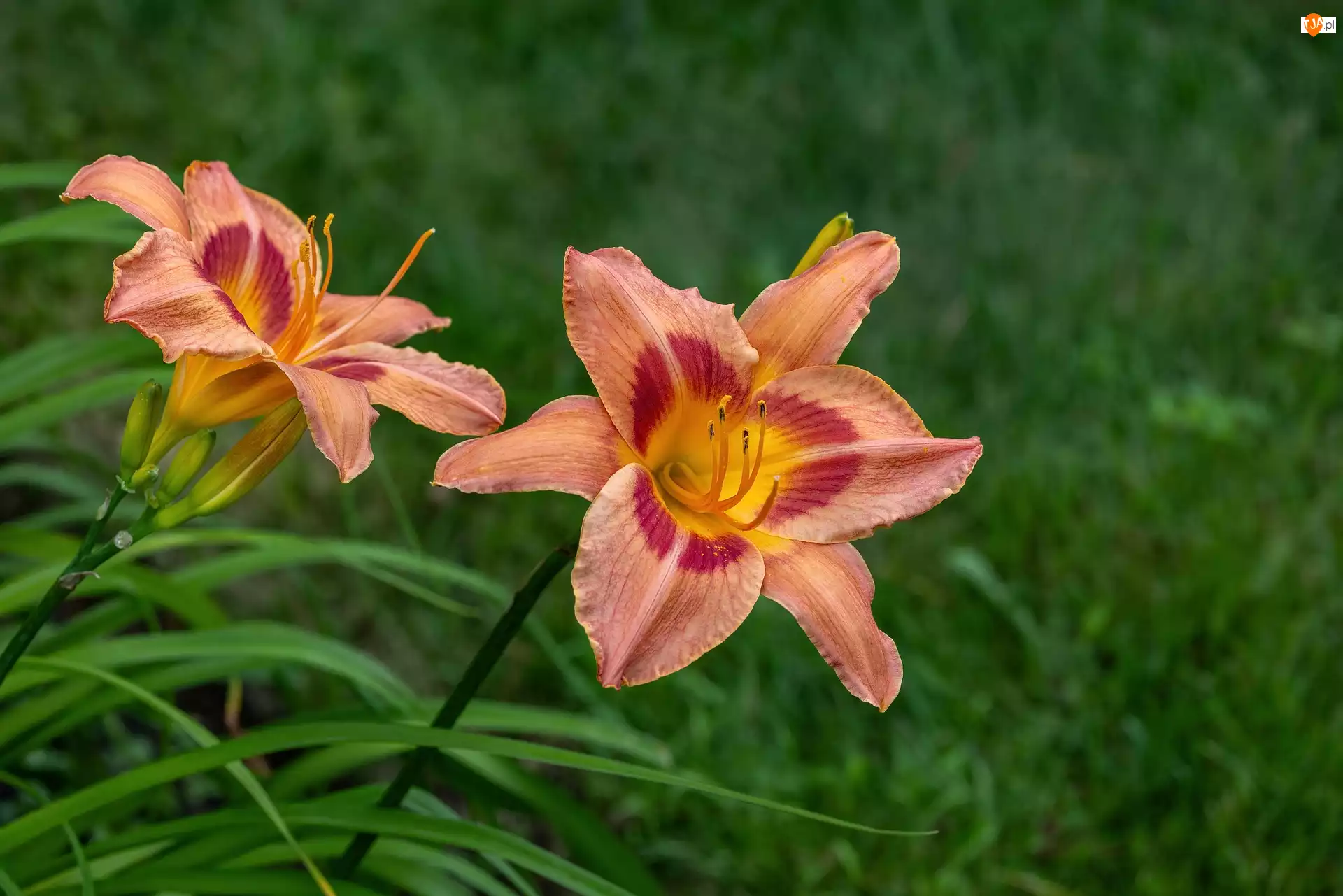 Pomarańczowe, Kwiaty, Lilie, Liliowce
