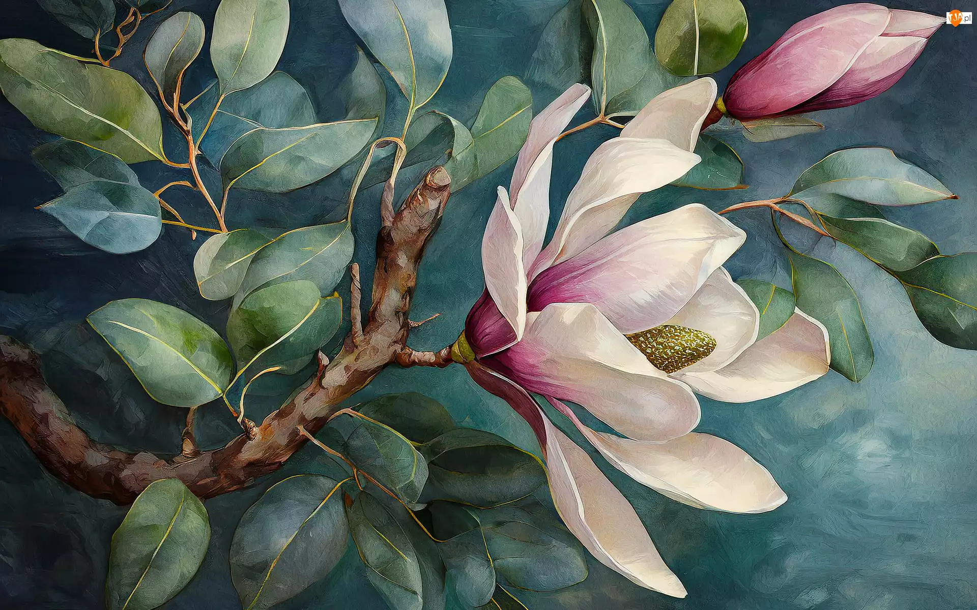 Kwitnąca, Malarstwo, Gałązka, Krzew, Magnolia