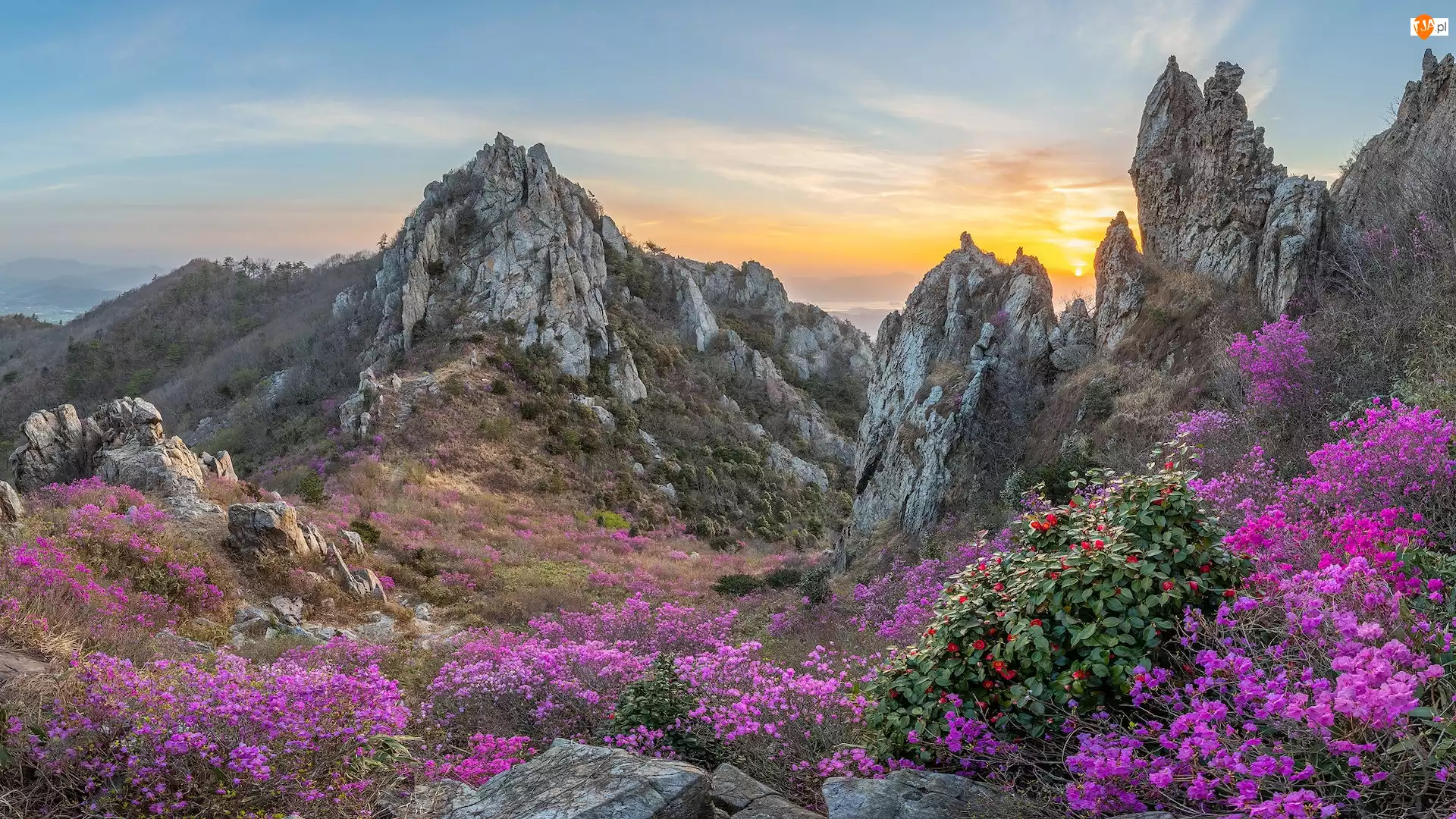 Kwiaty, Korea Południowa, Góry Jujaksan, Skały