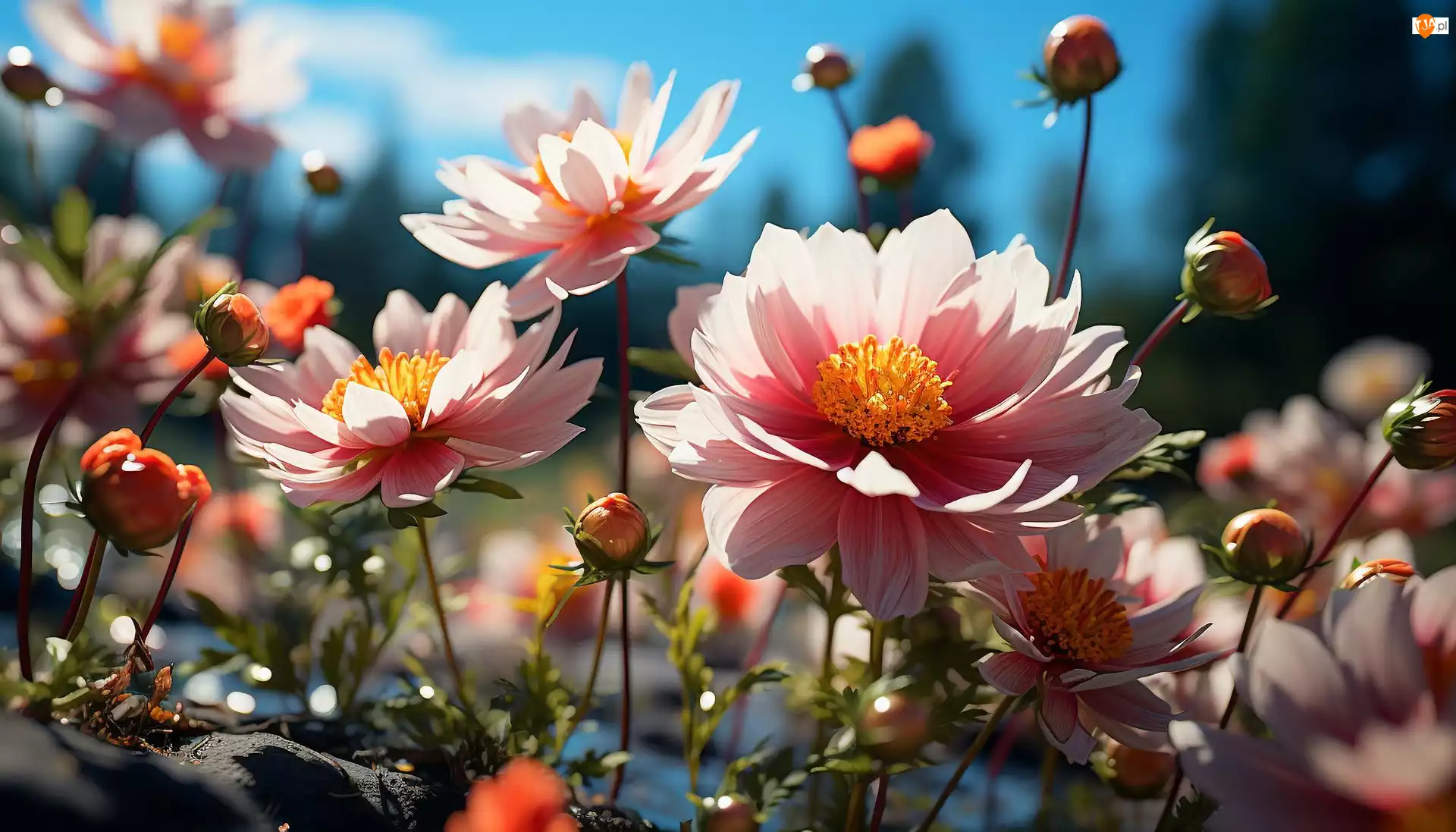 Następna >>Omszałe, Wodospad, Zielone, Drzewa, Skały, Rośliny