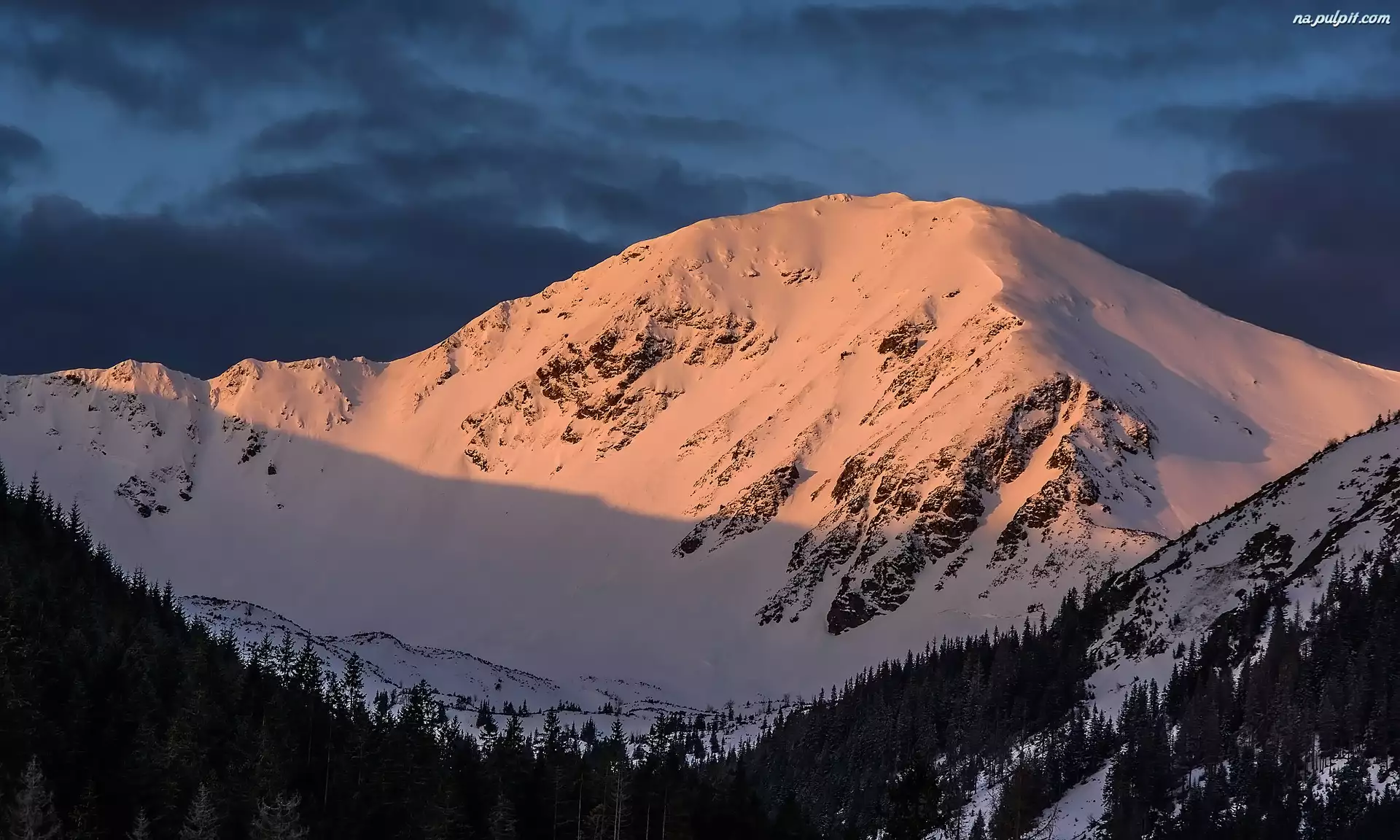Śnieg, Chmury, Zima, Góra, Drzewa