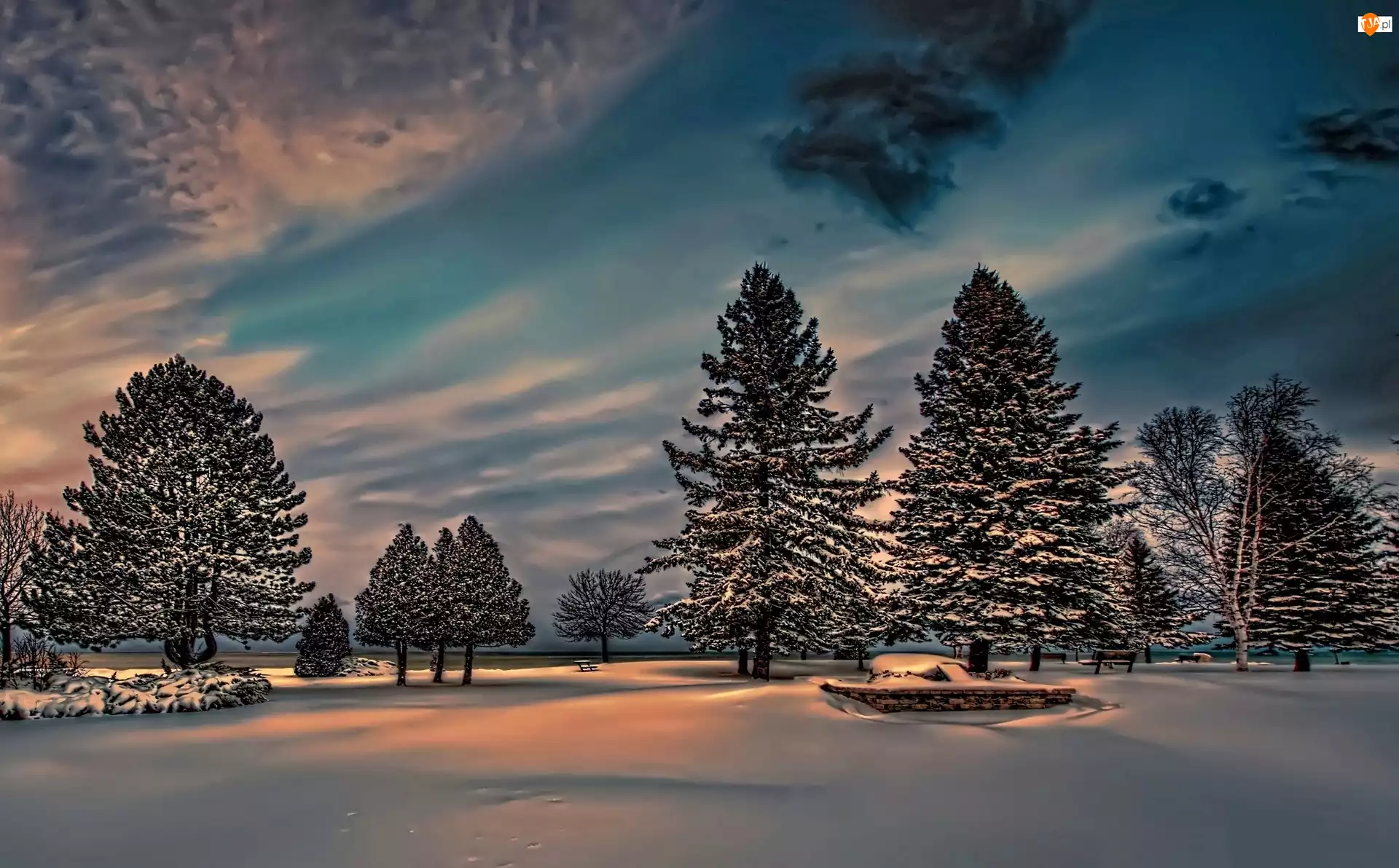 Śnieg, Zima, Park