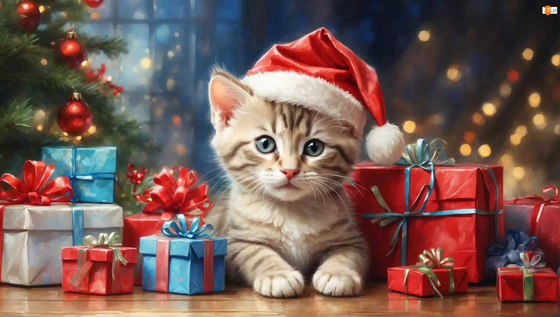 Prezenty, 2D, Kotek, Boże Narodzenie, Choinka