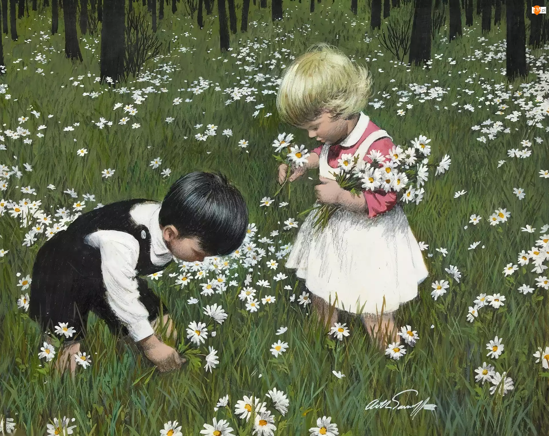 Łąka, Chłopiec, Dziewczynka