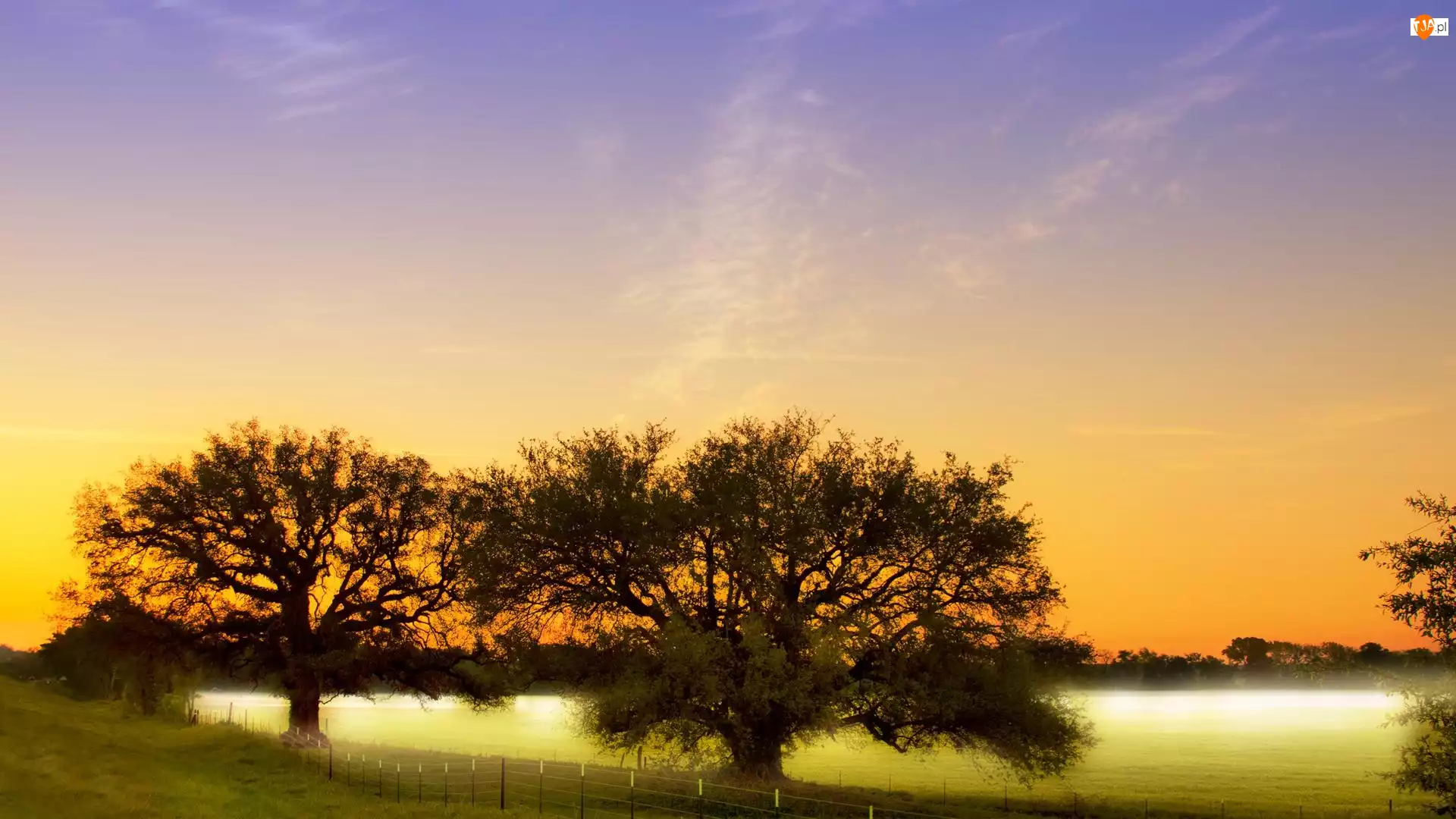 Łąka, Jezioro, Drzewa