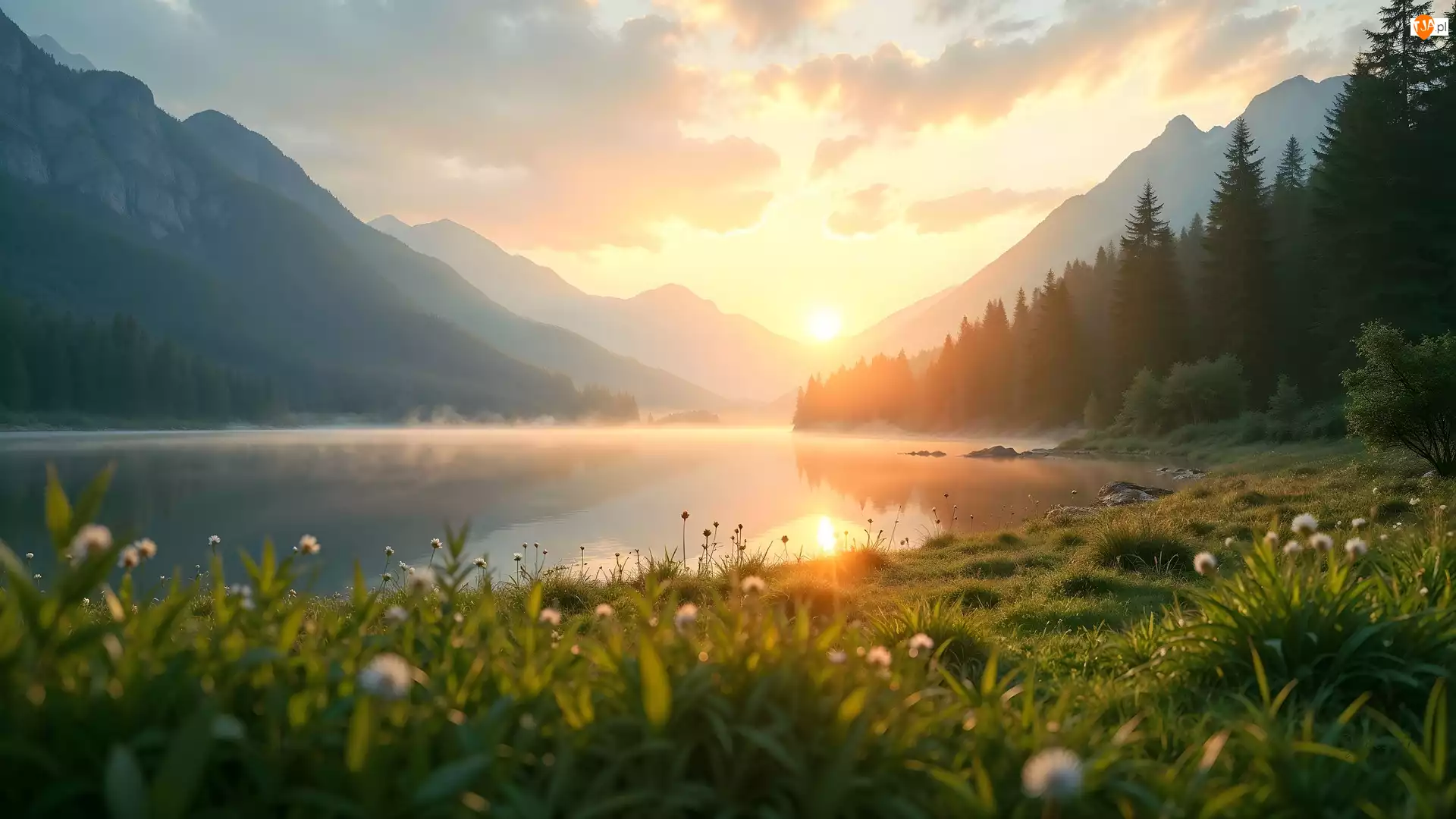 Tagi: Łąka Jezioro Góry Drzewa