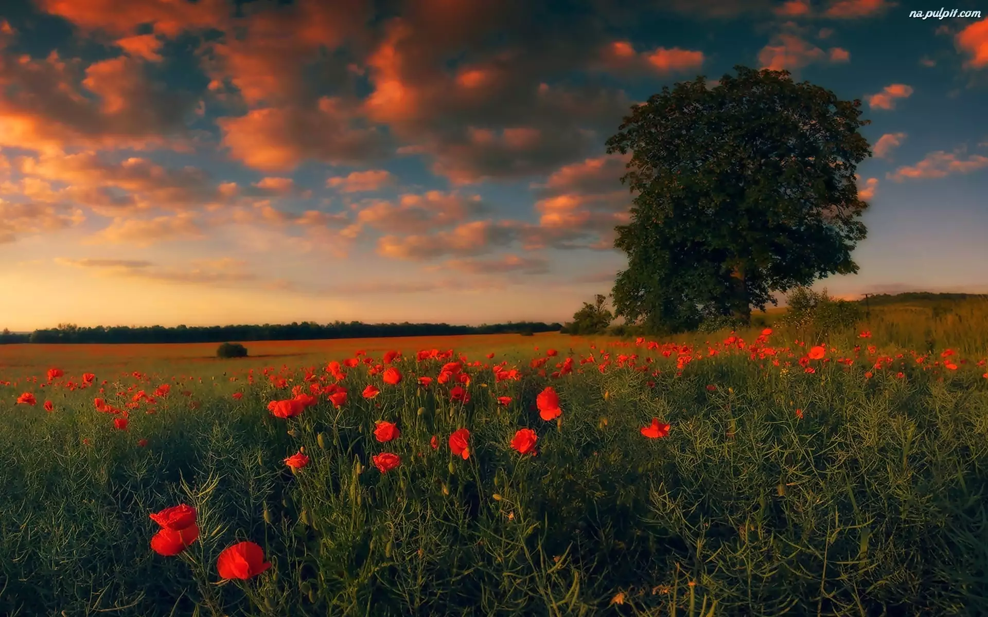 Łąka, Las, Maki, Drzewo