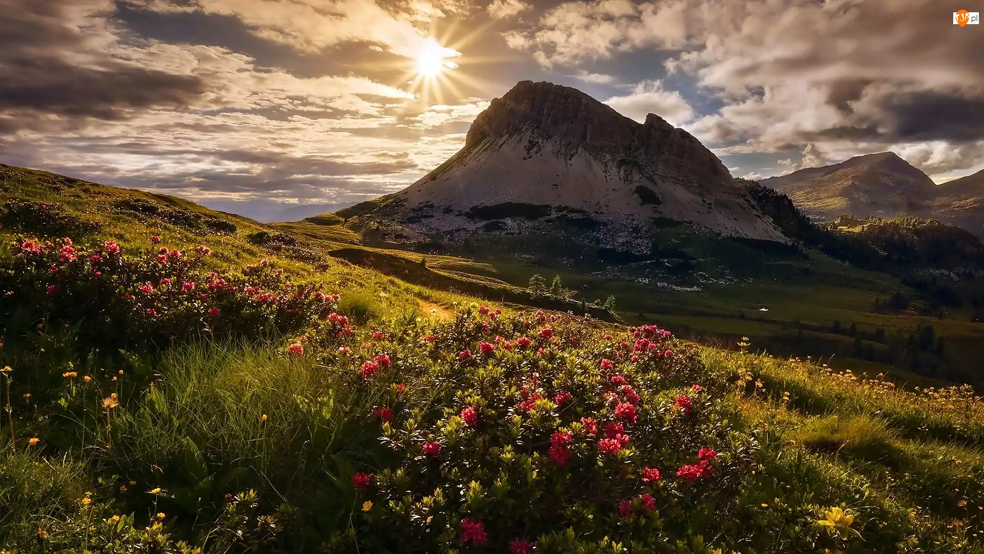 Łąka, Promienie, Góry, Wiosna, Rododendrony, Ch