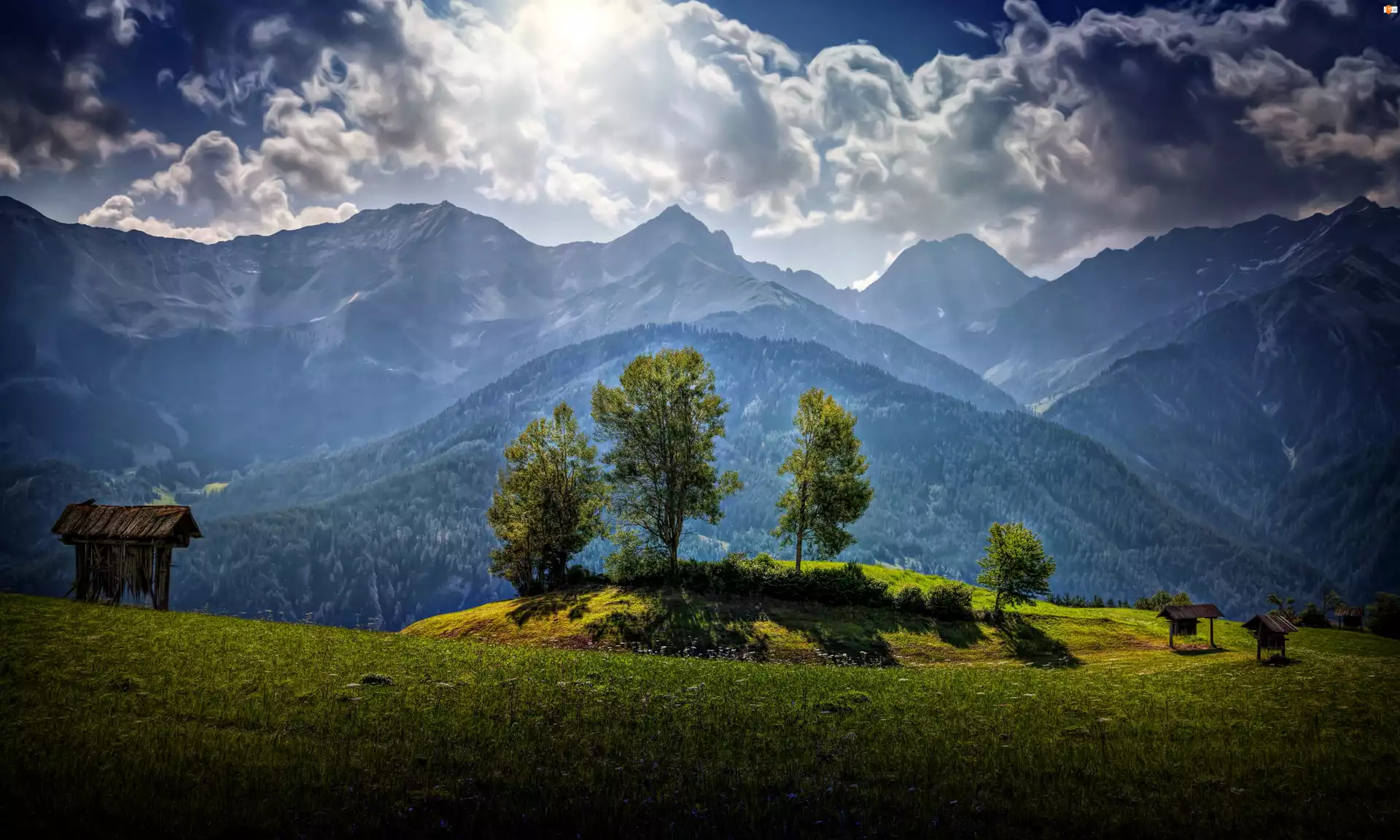 Łąka, Przebijające, Las, Austria, Góry, HDR, Chmury, Światło