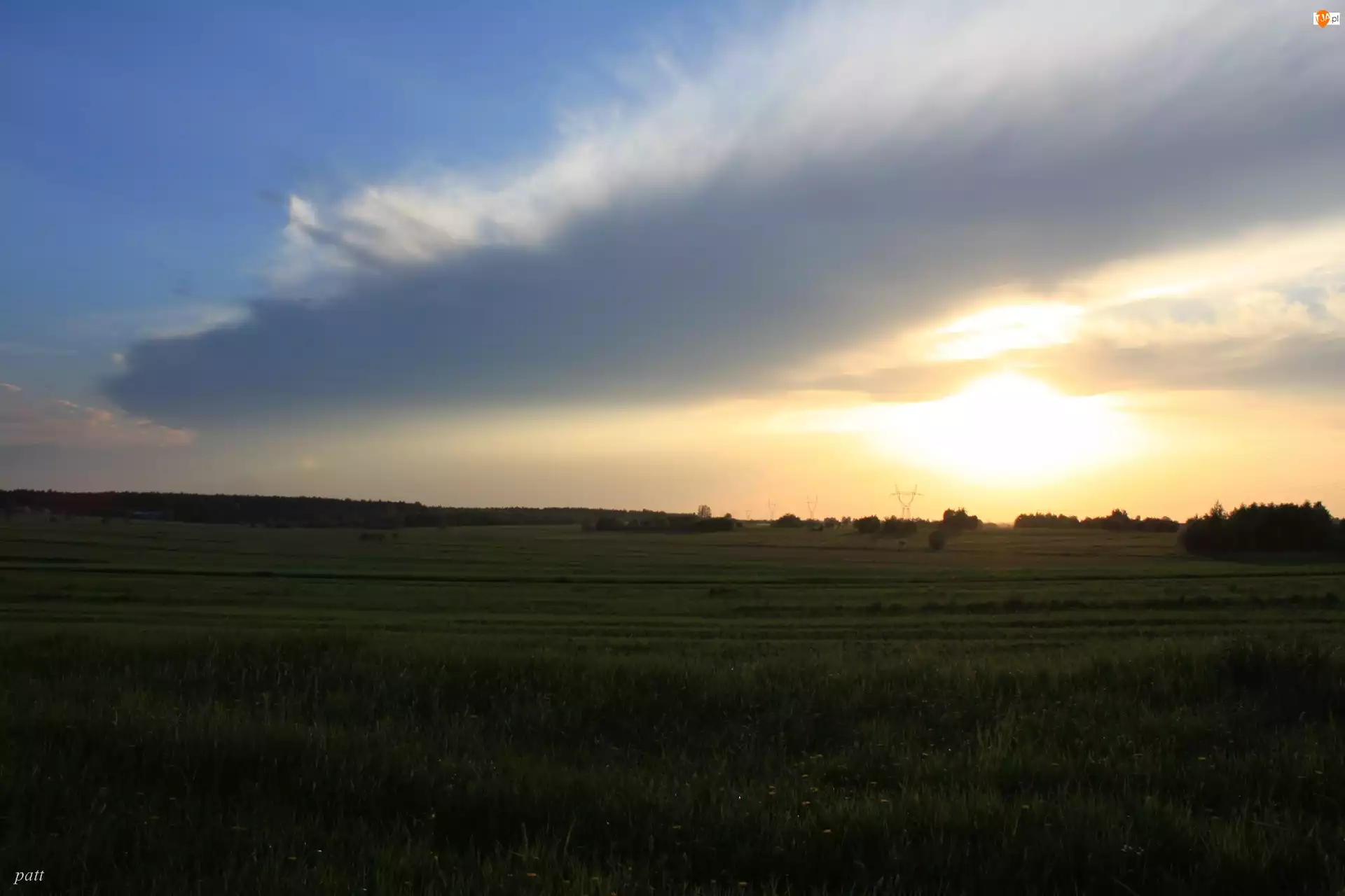 Łąka, Słońca, Chmury, Zachód