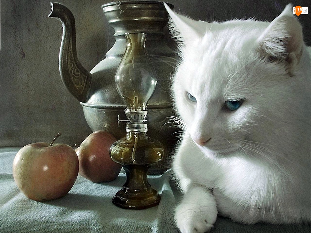Lampa, Kot, Jabłko, Biały, Dzbanek